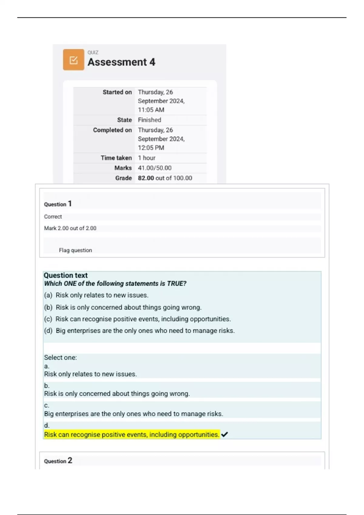 (c) Risk can recognise positive events, including opportunities.