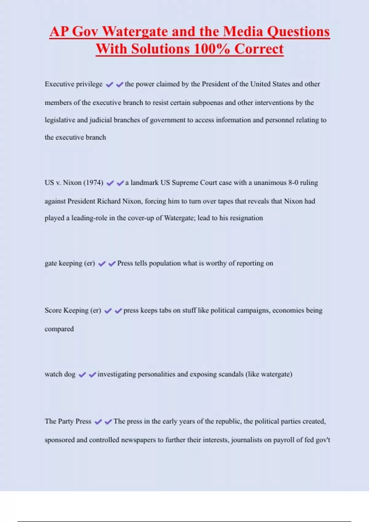 , AP Gov Watergate and the Media Questions