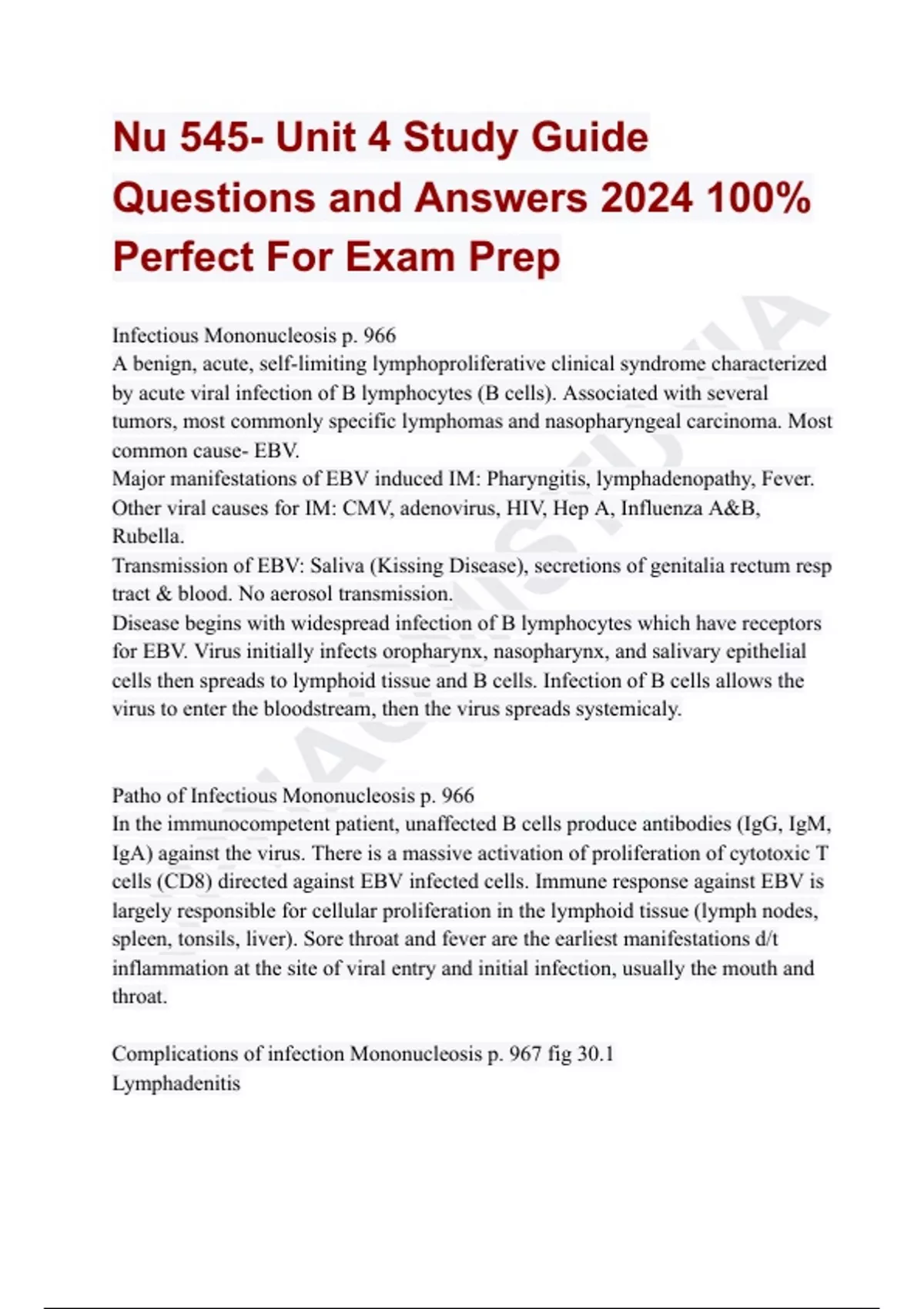 Complications of infection Mononucleosis p. 967 fig 30.1