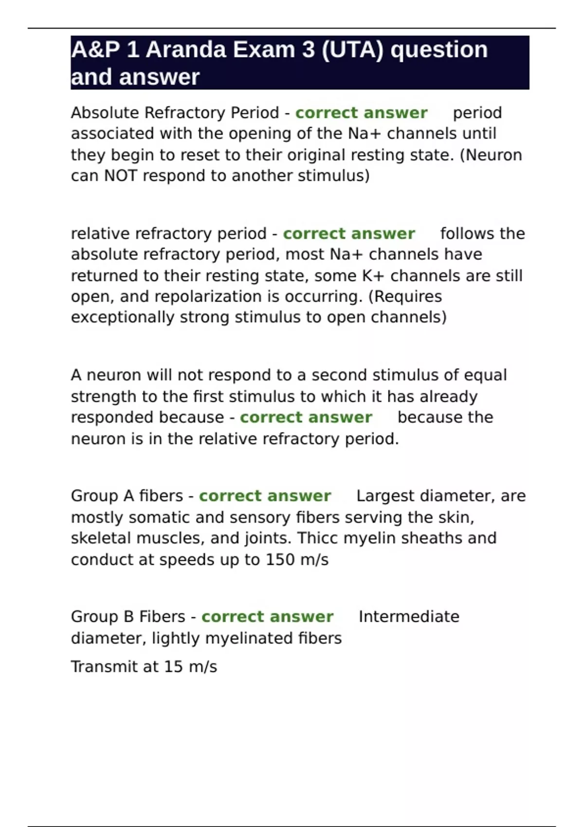 Absolute Refractory Period - correct answer ✅period