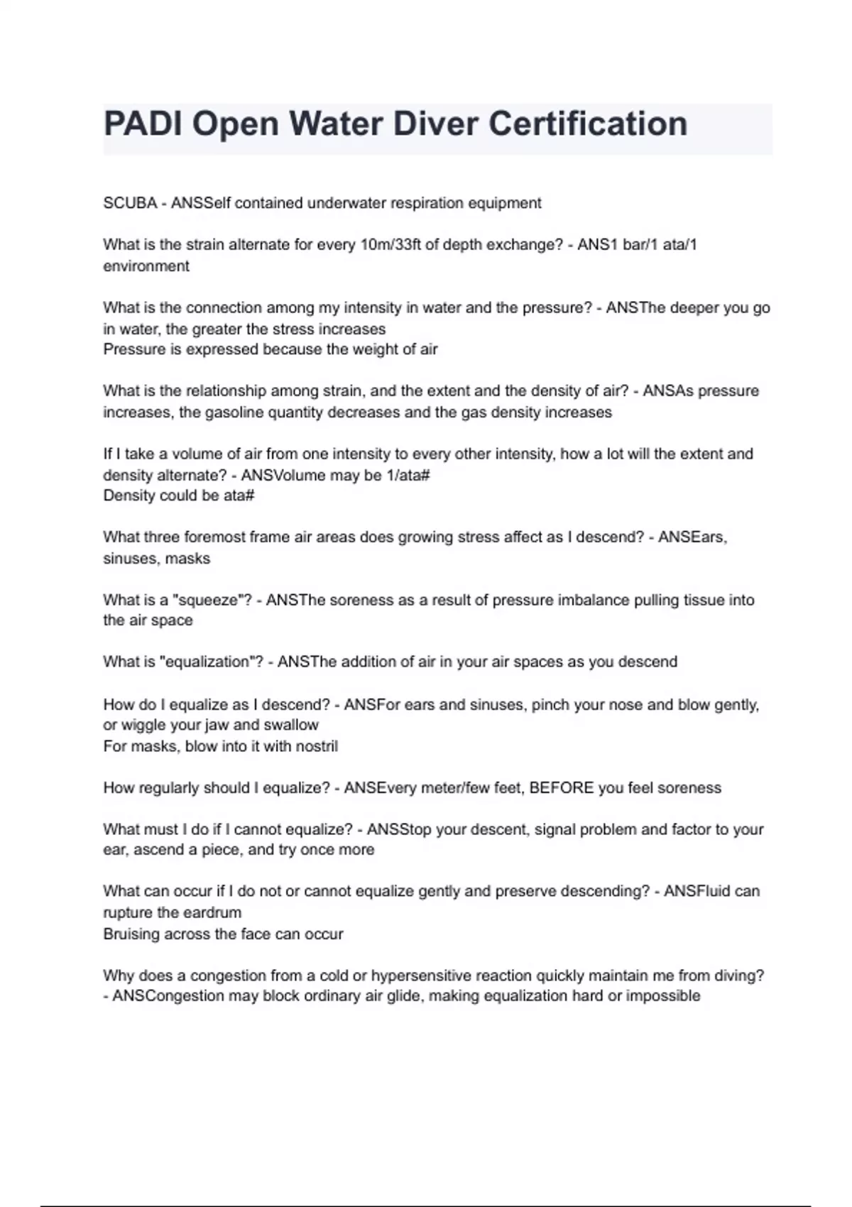 How do I equalize as I descend? - ANSFor ears and sinuses, pinch your nose and blow gently,