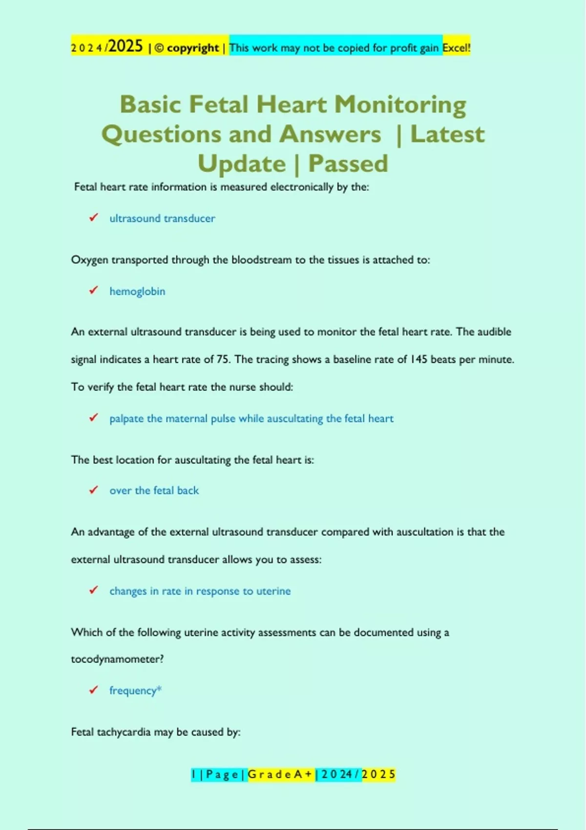 , 2024/ 2025 | © copyright | This work may not be copied for profit gain Excel!