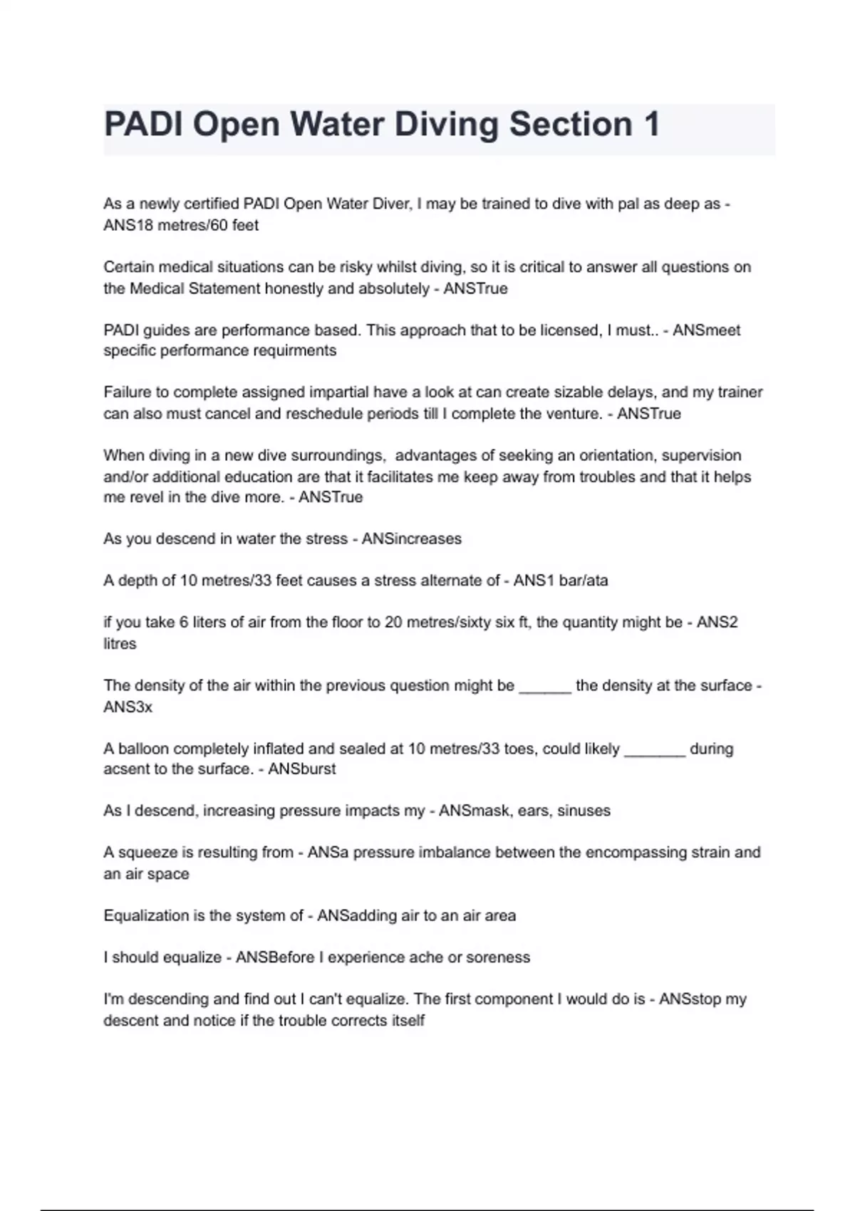 PADI Open Water Diving Section 1 questions with correct answers 2024/2025
