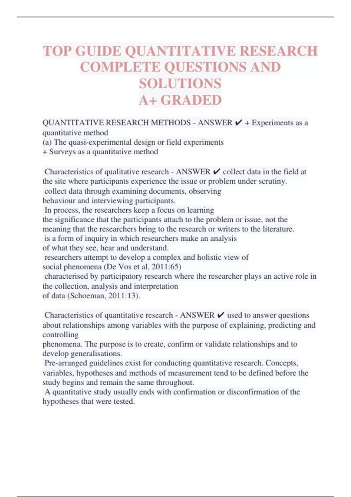 QUANTITATIVE RESEARCH METHODS - ANSWER ✔ + Experiments as a