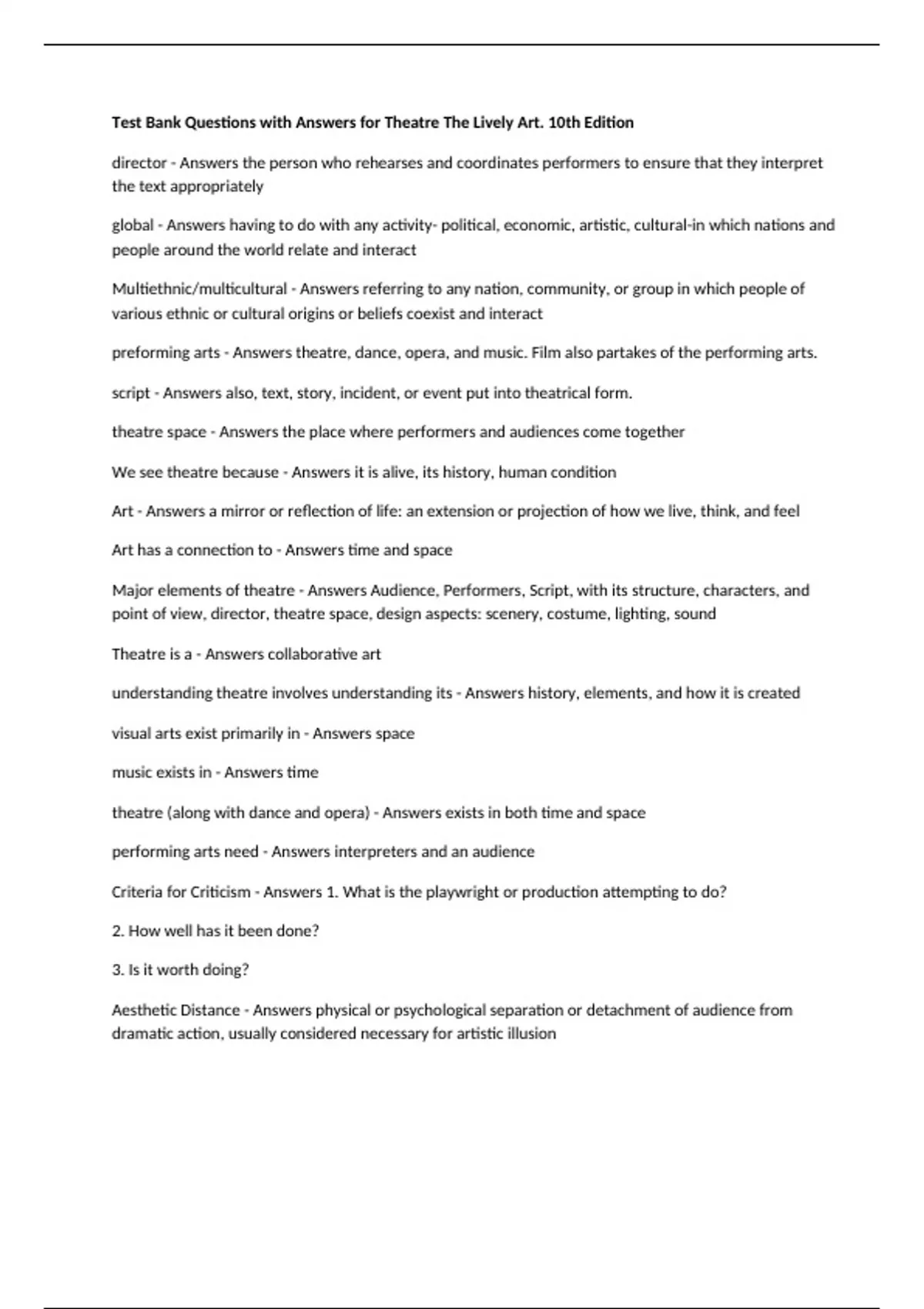 Criteria for Criticism - Answers 1. What is the playwright or production attempting to do?