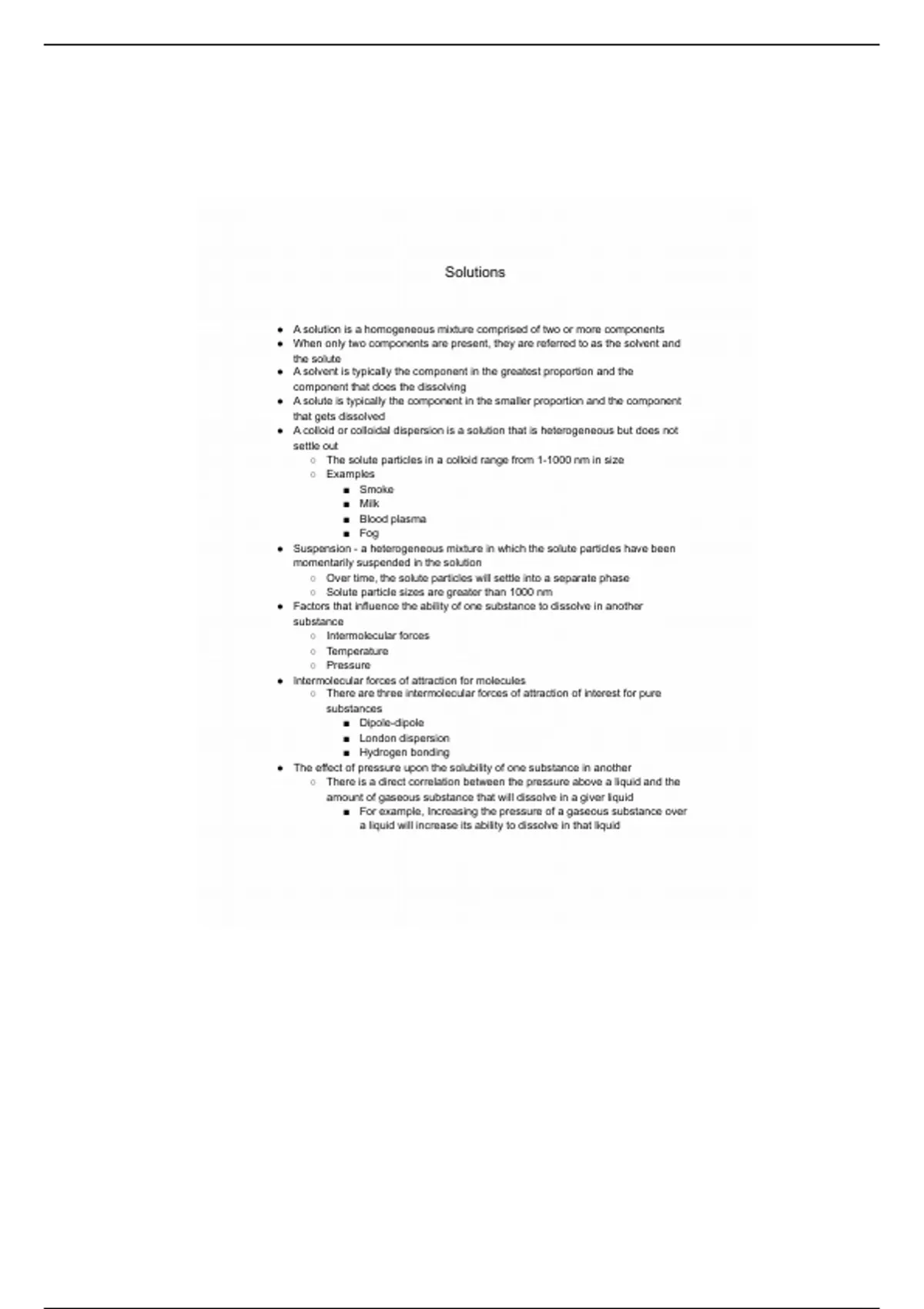 This is a comprehensive and detailed note on Chapter 9; Solutions for Chem 1120. *Essential Study Material!!