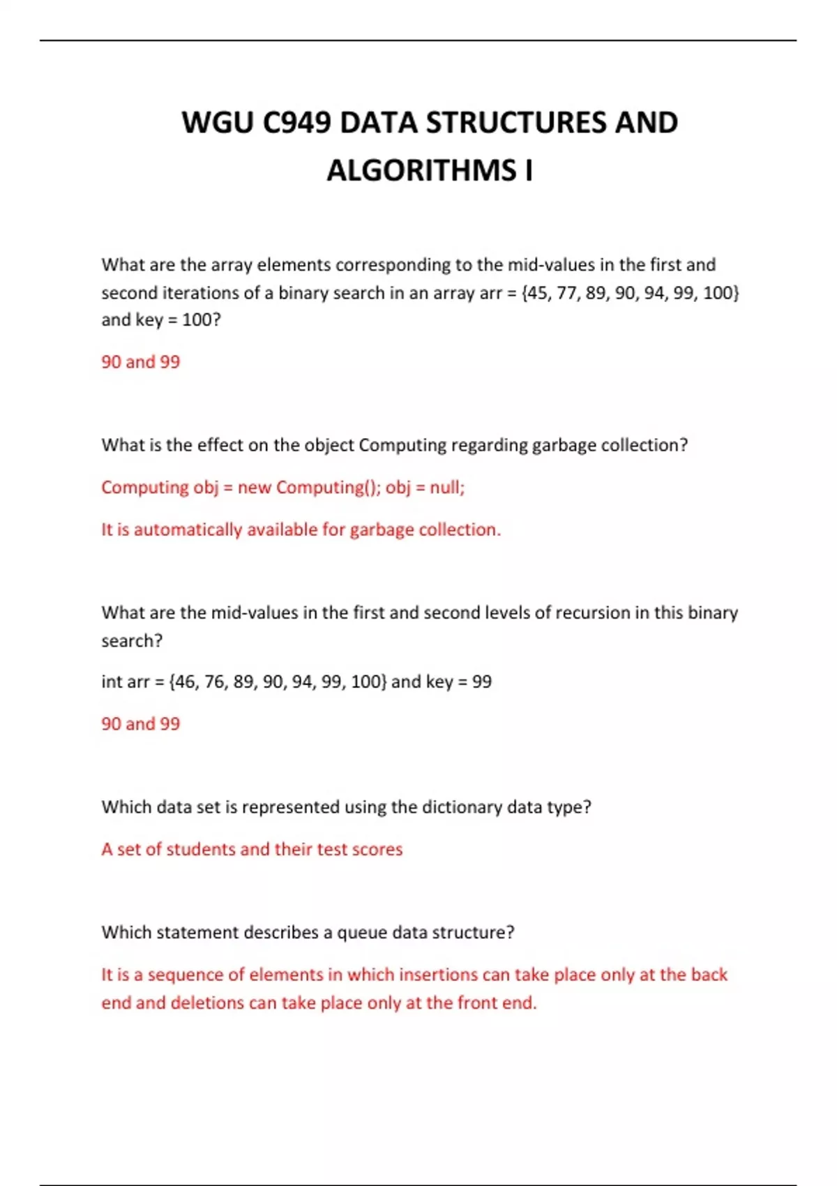 WGU C949 DATA STRUCTURES AND ALGORITHMS I QUESTIONS AND ANSWERS 2024