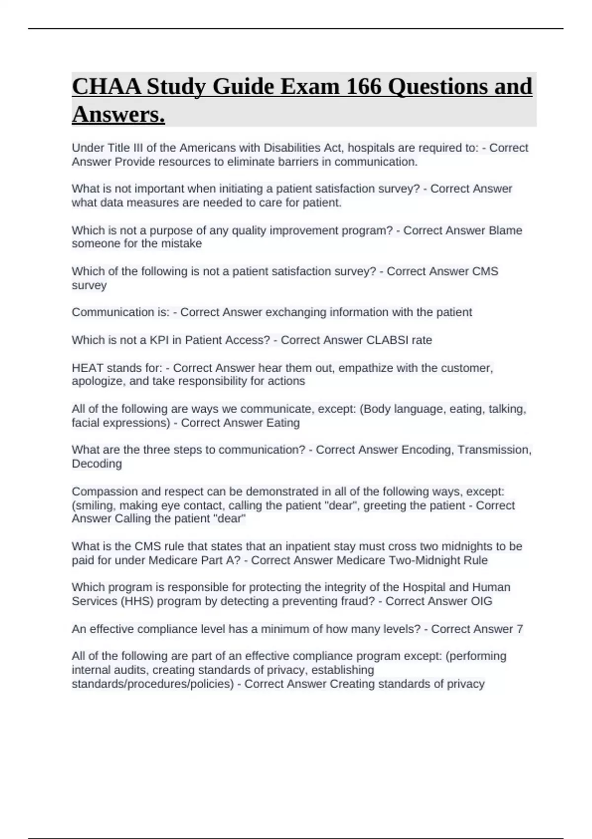 paid for under Medicare Part A? - Correct Answer Medicare Two-Midnight Rule