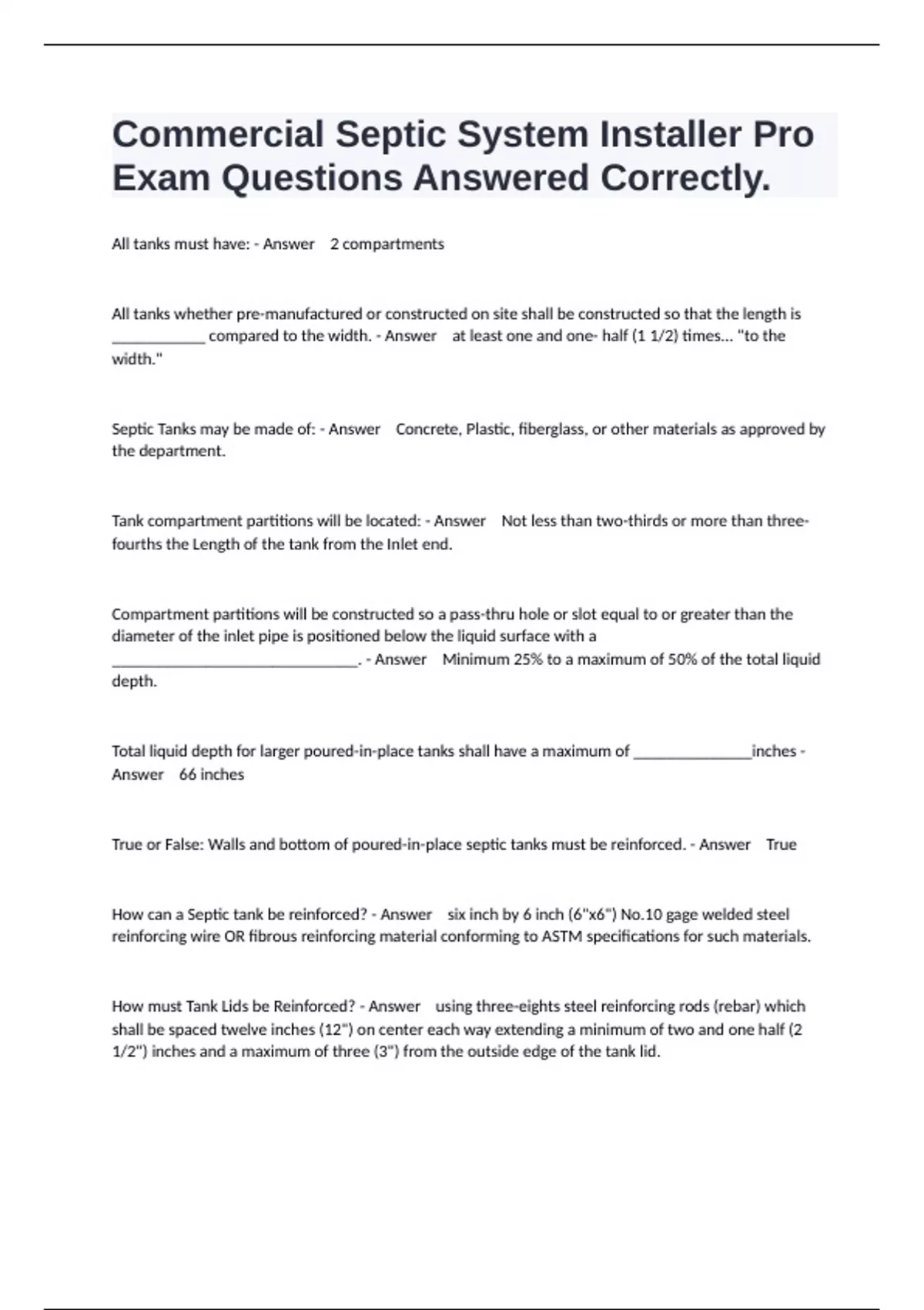 Commercial Septic System Installer Pro Exam Questions Answered Correctly.