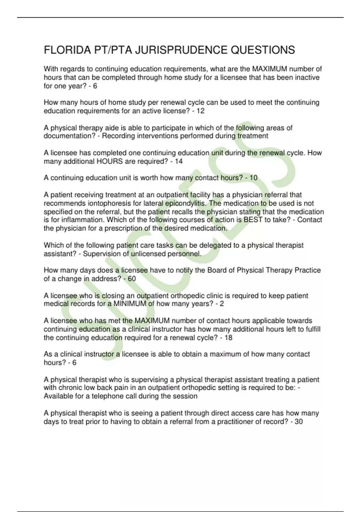 FLORIDA PT/PTA JURISPRUDENCE QUESTIONS