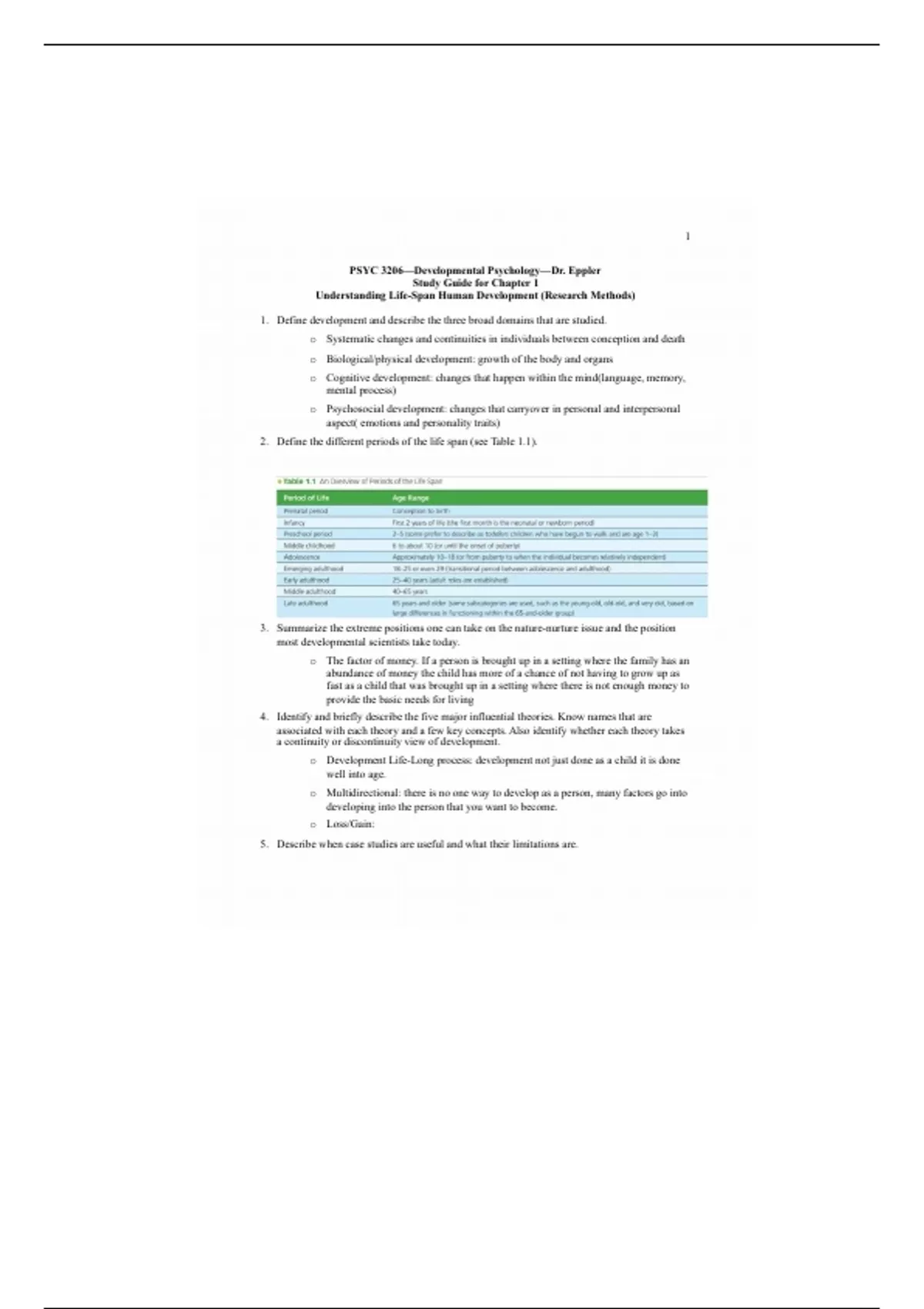 2. Define the different periods of the life span (see Table 1.1).