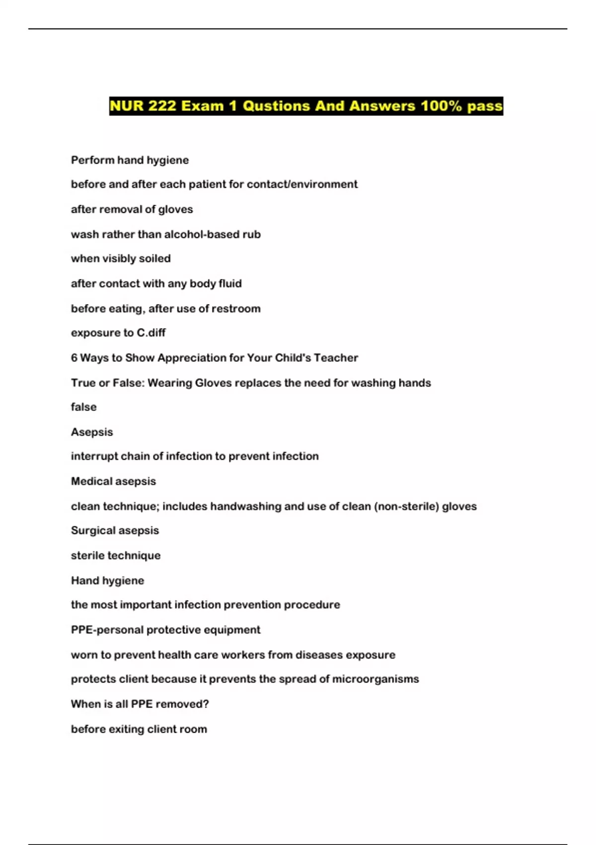NUR 222 Exam 1 Qustions And Answers 100% pass