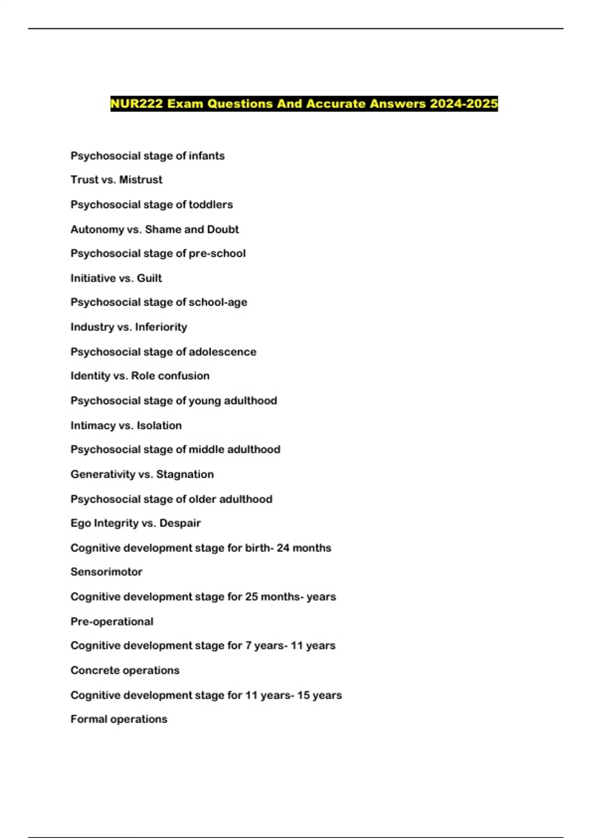 NUR222 Exam Questions And Accurate Answers 2024-2025
