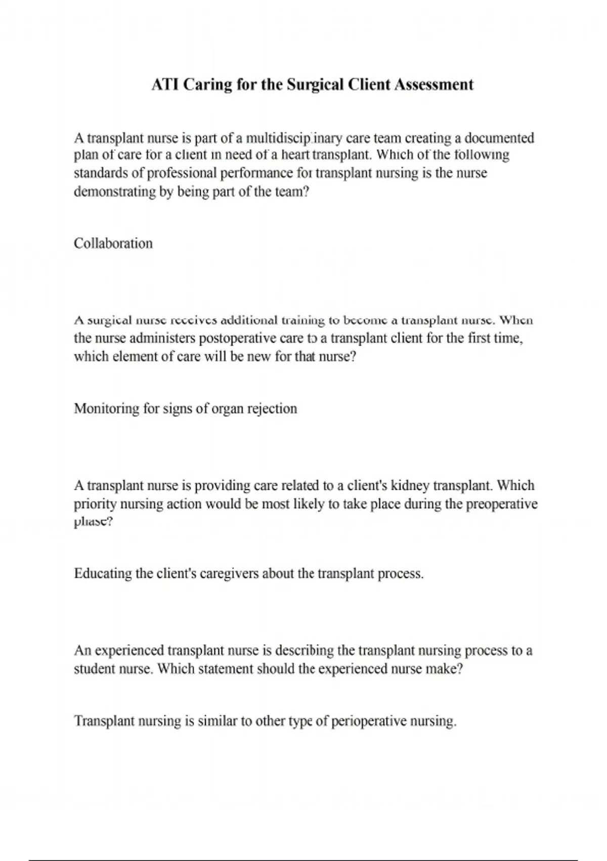 ATI Caring for the Surgical Client Assessment