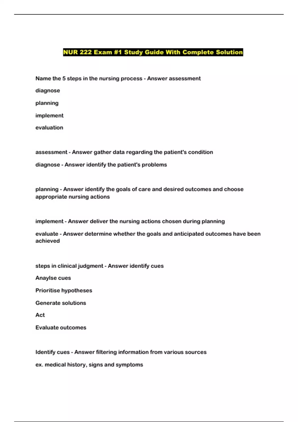 NUR 222 Exam #1 Study Guide With Complete Solution...