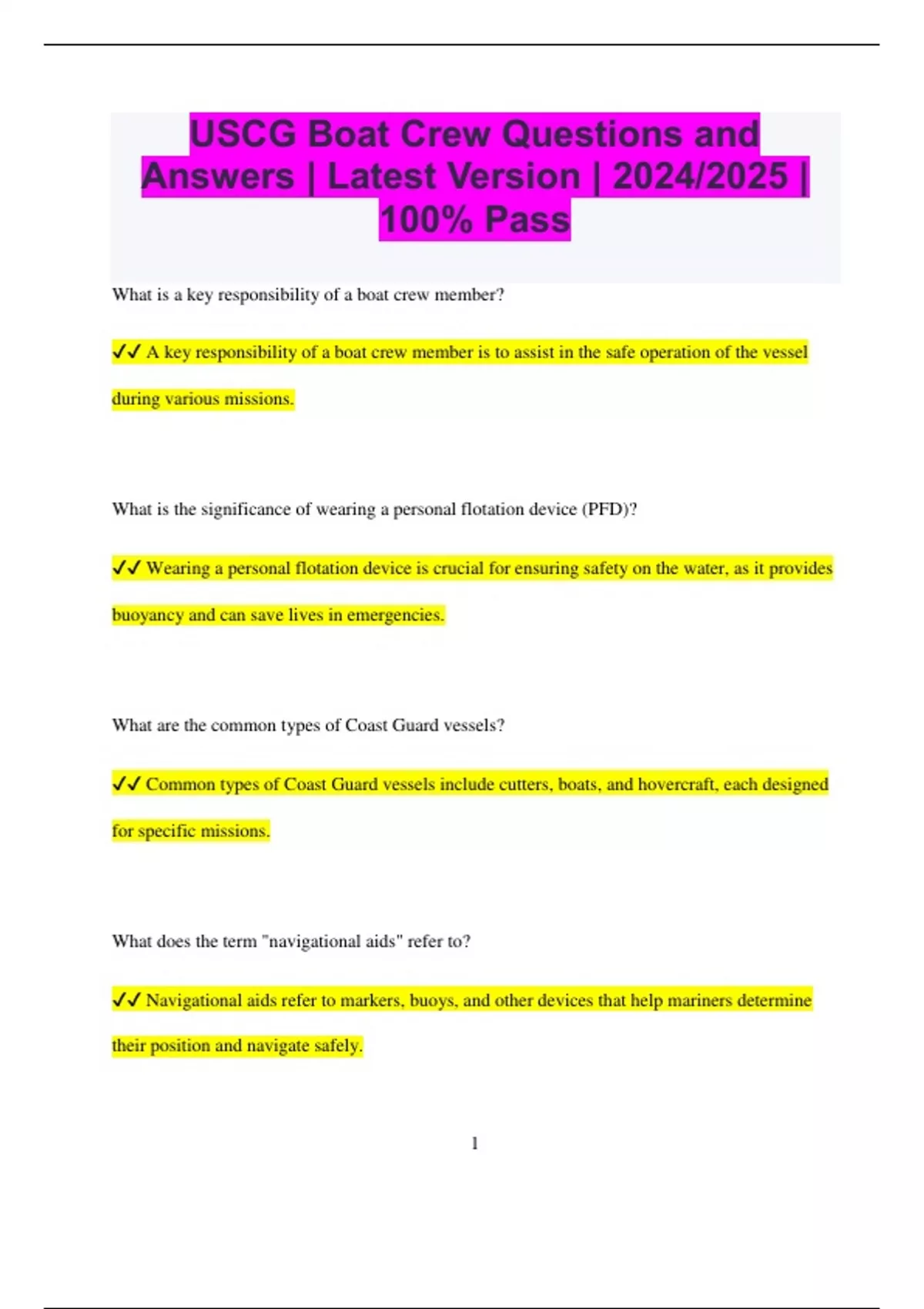 ✔✔ A key responsibility of a boat crew member is to assist in the safe operation of the vessel