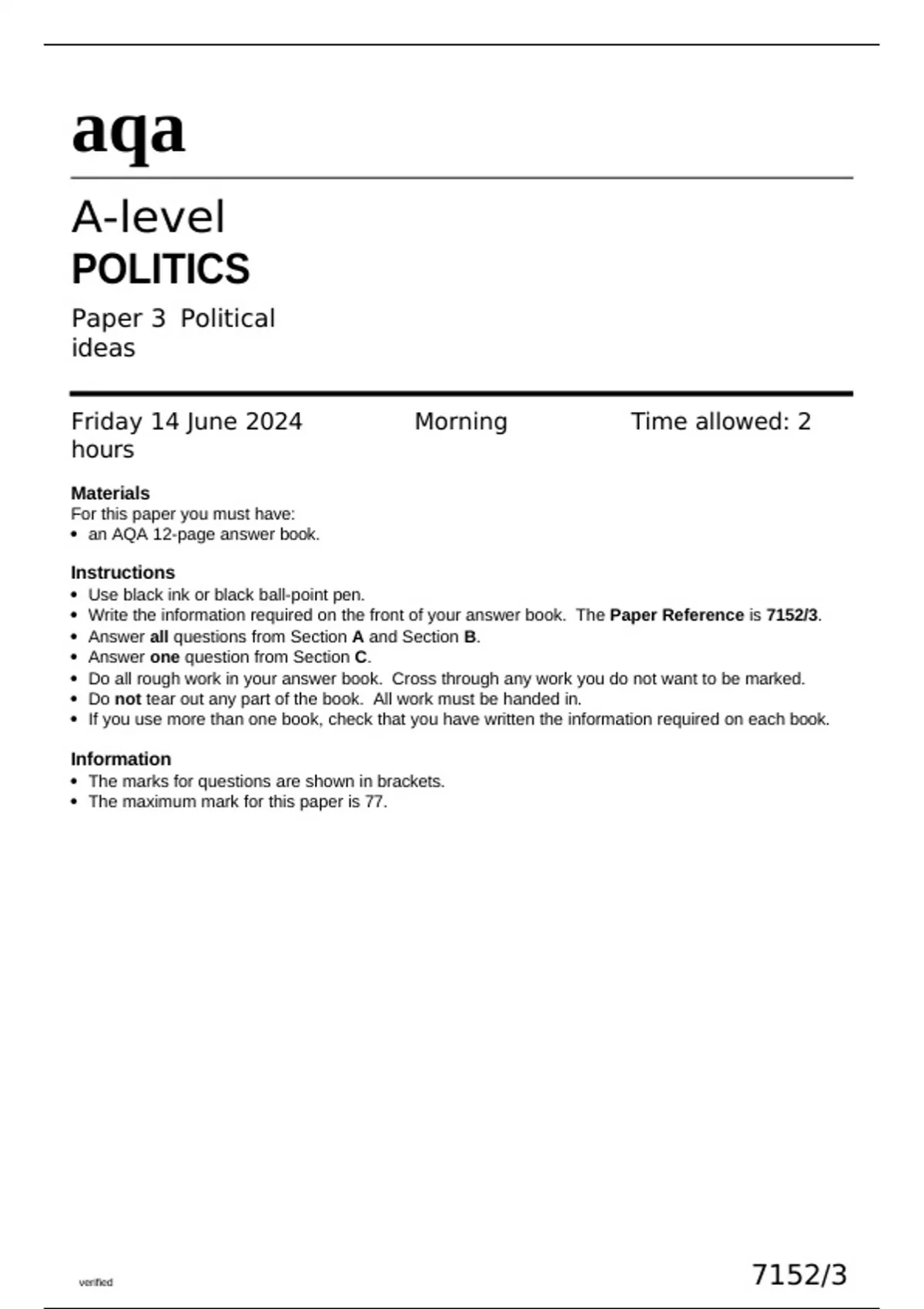 Write the information required on the front of your answer book. The Paper Reference is 7152/3.