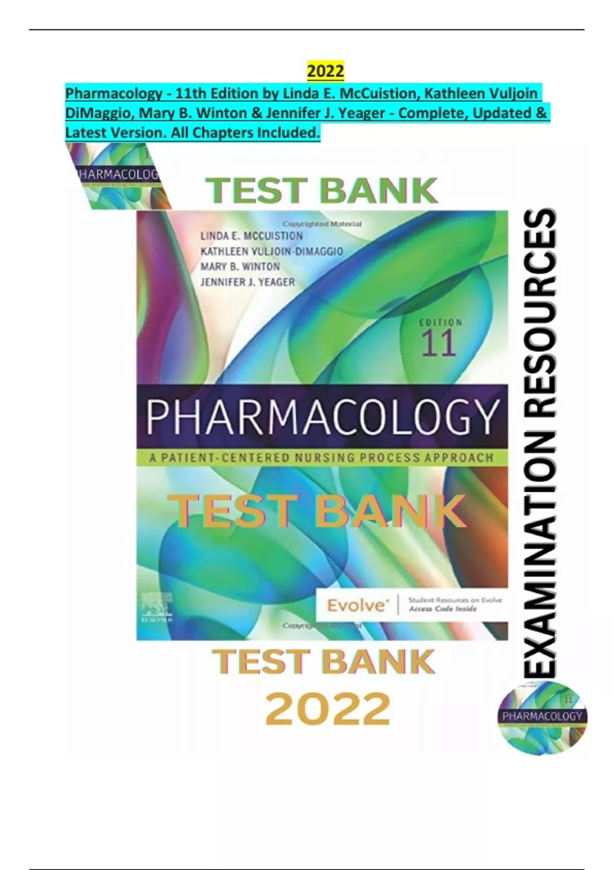 Test Bank for Pharmacology - 11th Edition by Linda E. McCuistion, Kathleen Vuljoin DiMaggio, Mary