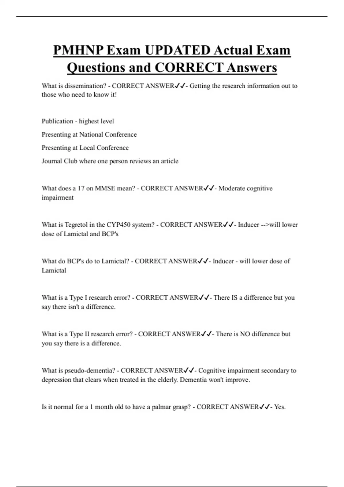 Questions and CORRECT Answers