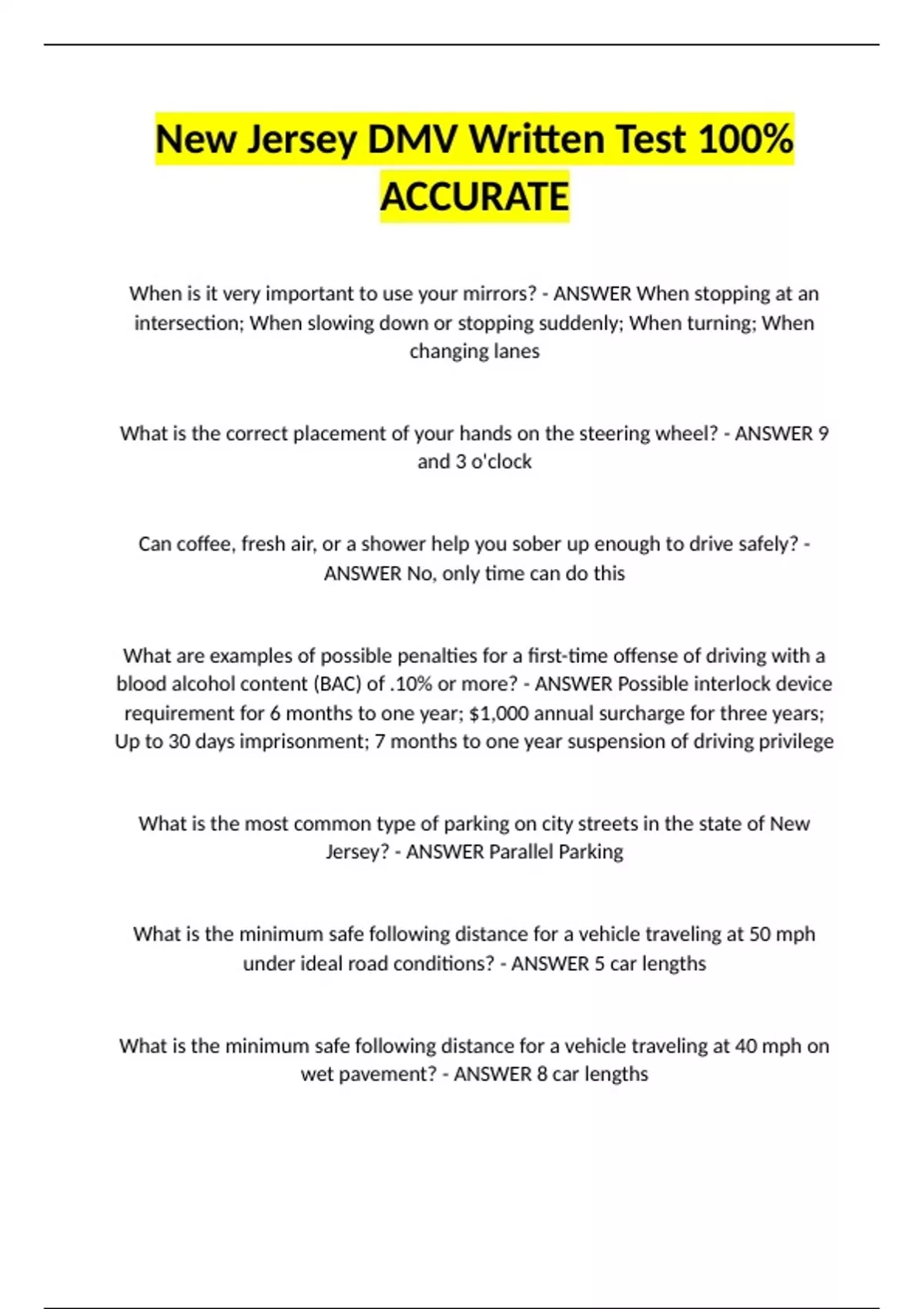 Jersey? - ANSWER Parallel Parking