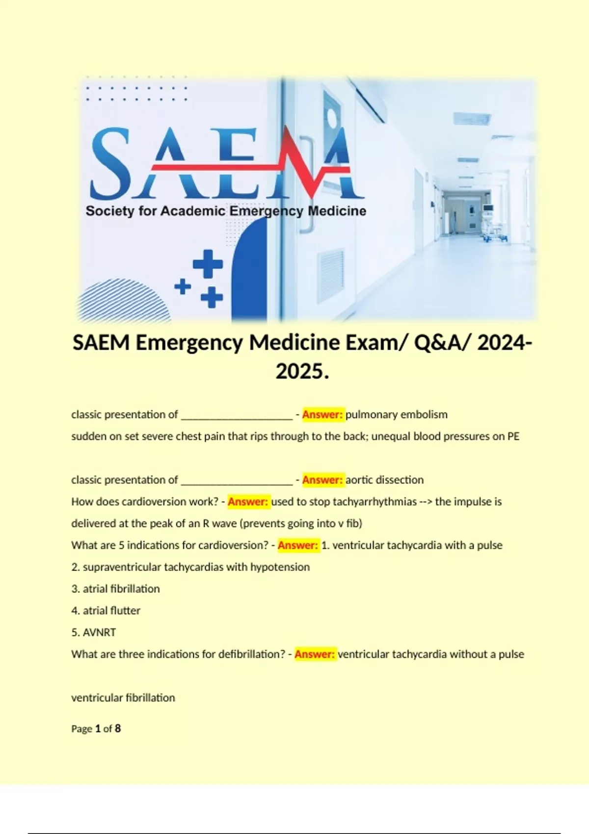 SAEM Emergency Medicine Exam/ Q&A/ .