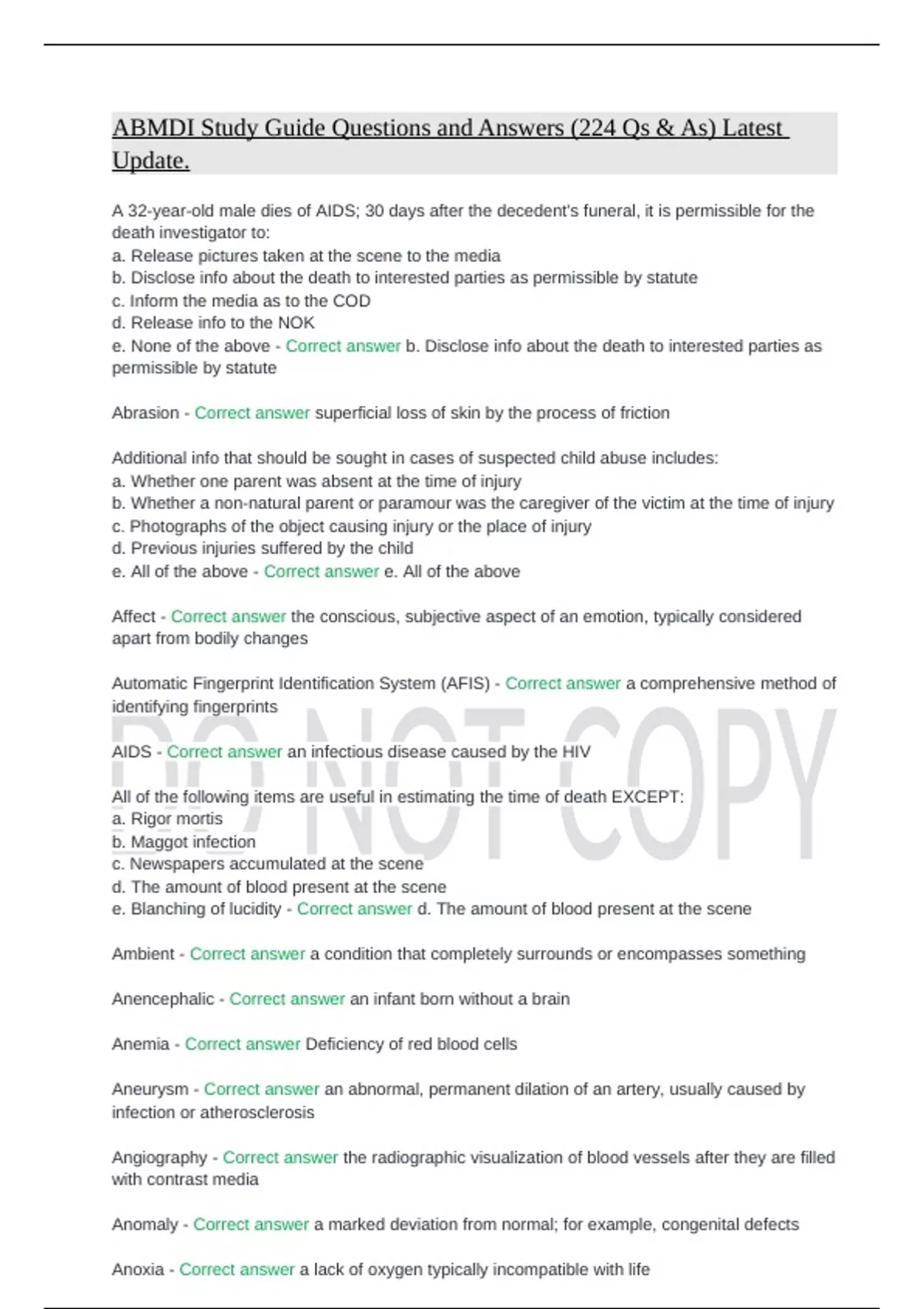 Autopsy - Correct answer a medical examination of the decent, which includes an external and