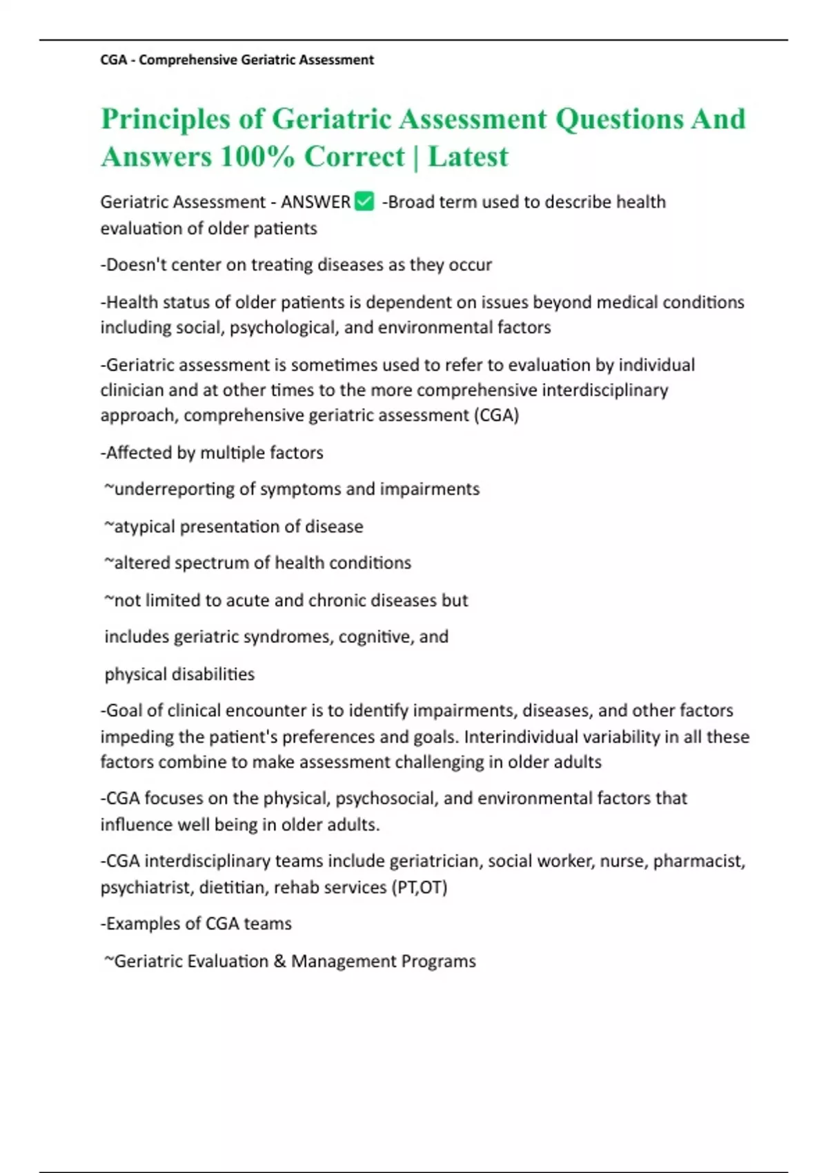 ,CGA - Comprehensive Geriatric Assessment