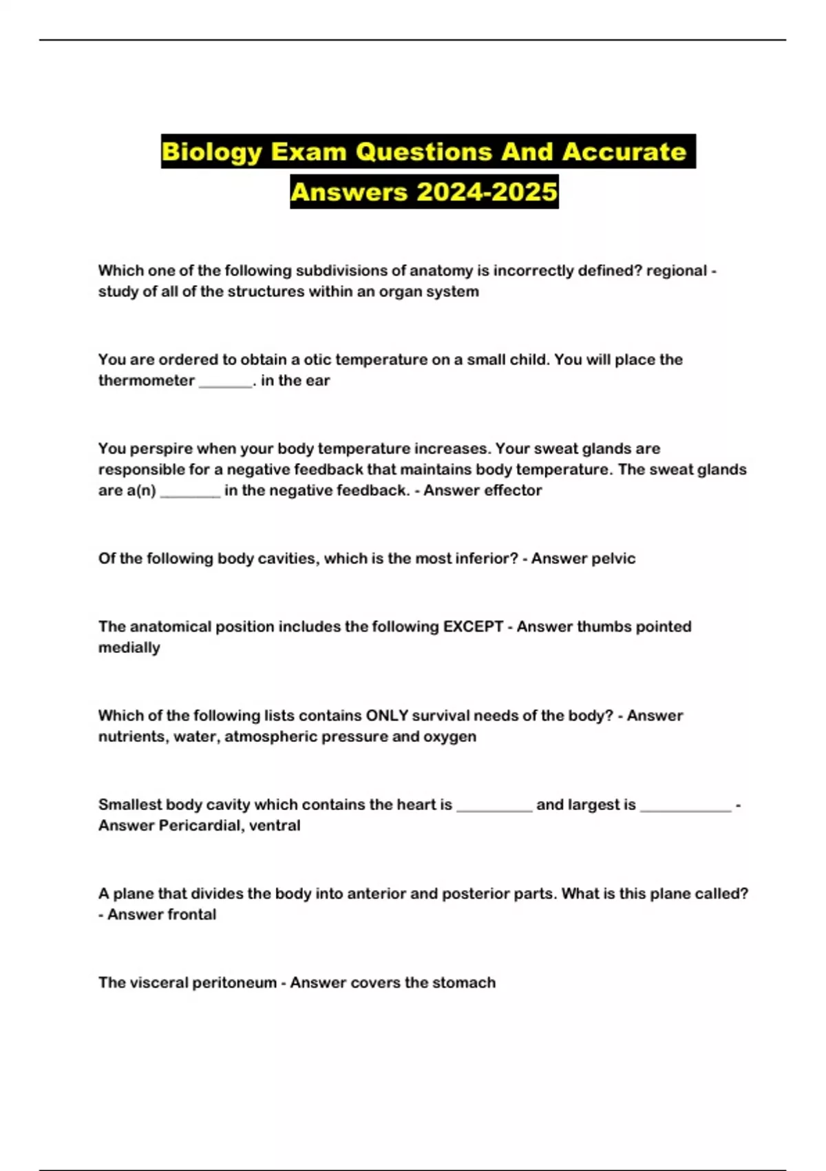 Of the following body cavities, which is the most inferior? - Answer pelvic
