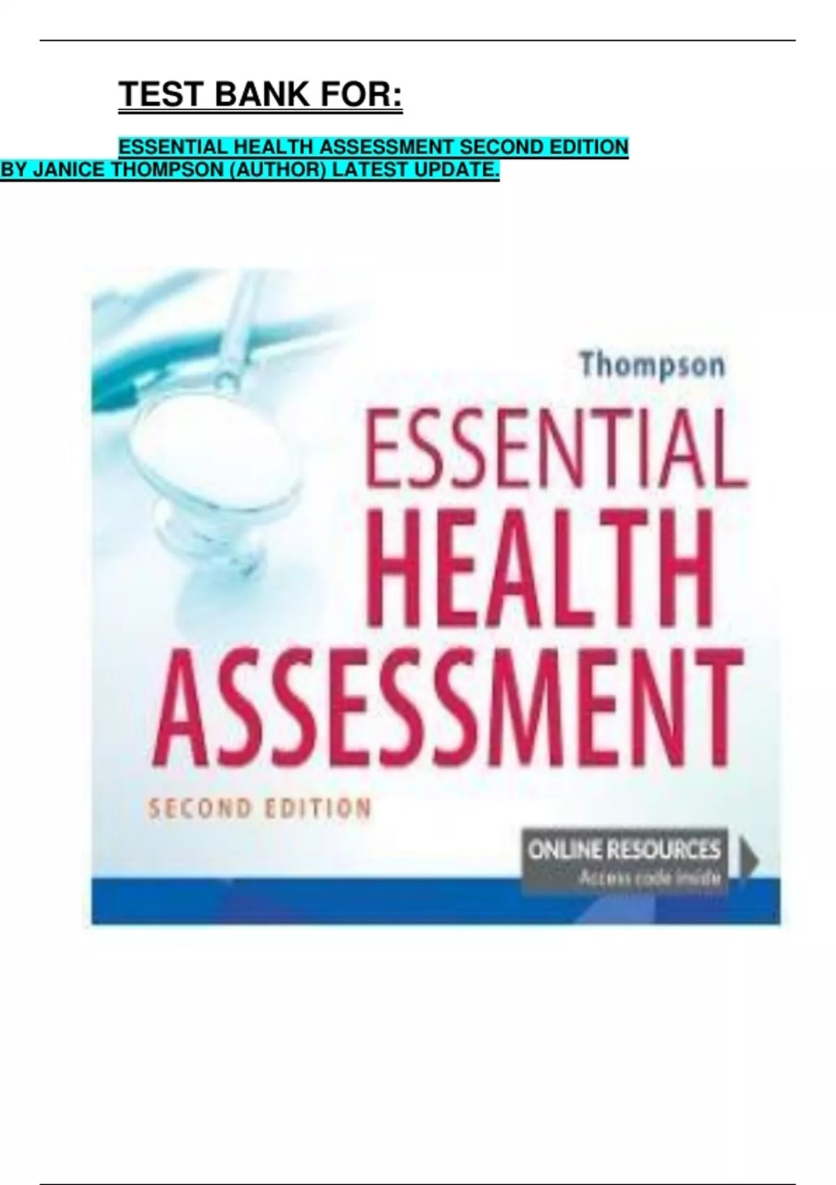 ESSENTIAL HEALTH ASSESSMENT SECOND EDITION