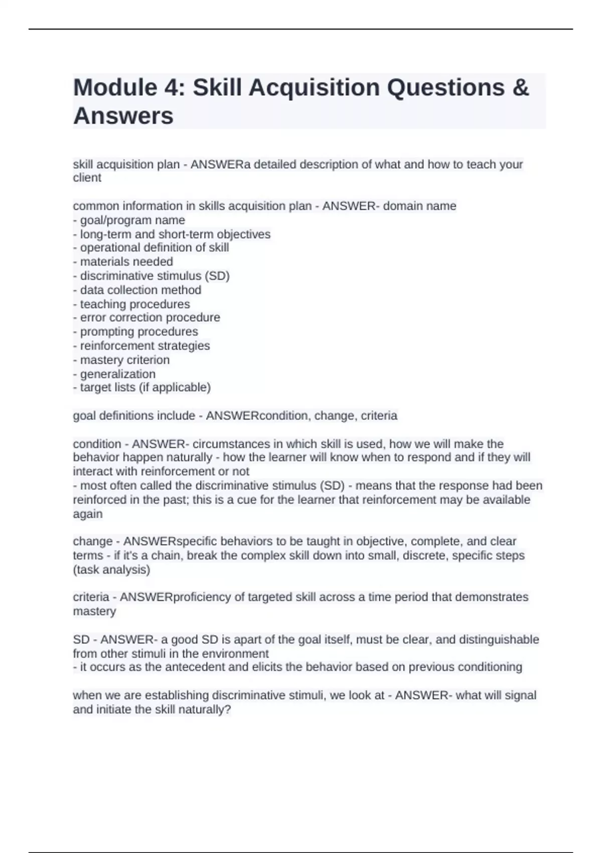 skill acquisition plan - ANSWERa detailed description of what and how to teach your
