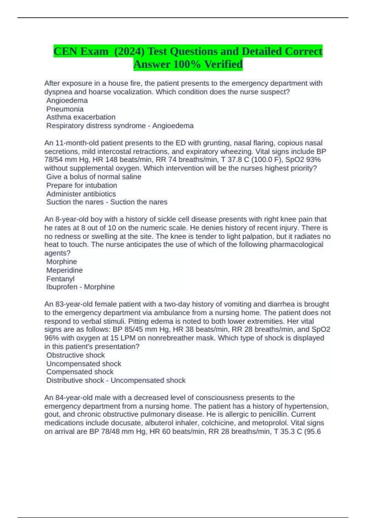 emergency department from a nursing home. The patient has a history of hypertension,