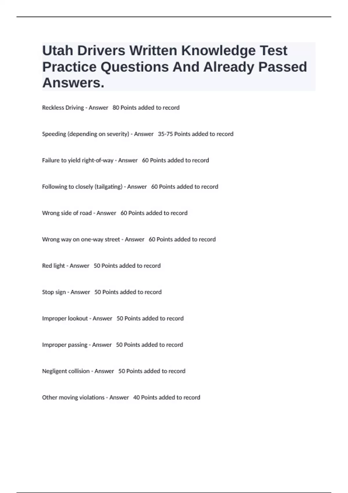 Utah Drivers Written Knowledge Test Practice Questions And Already Passed Answers.