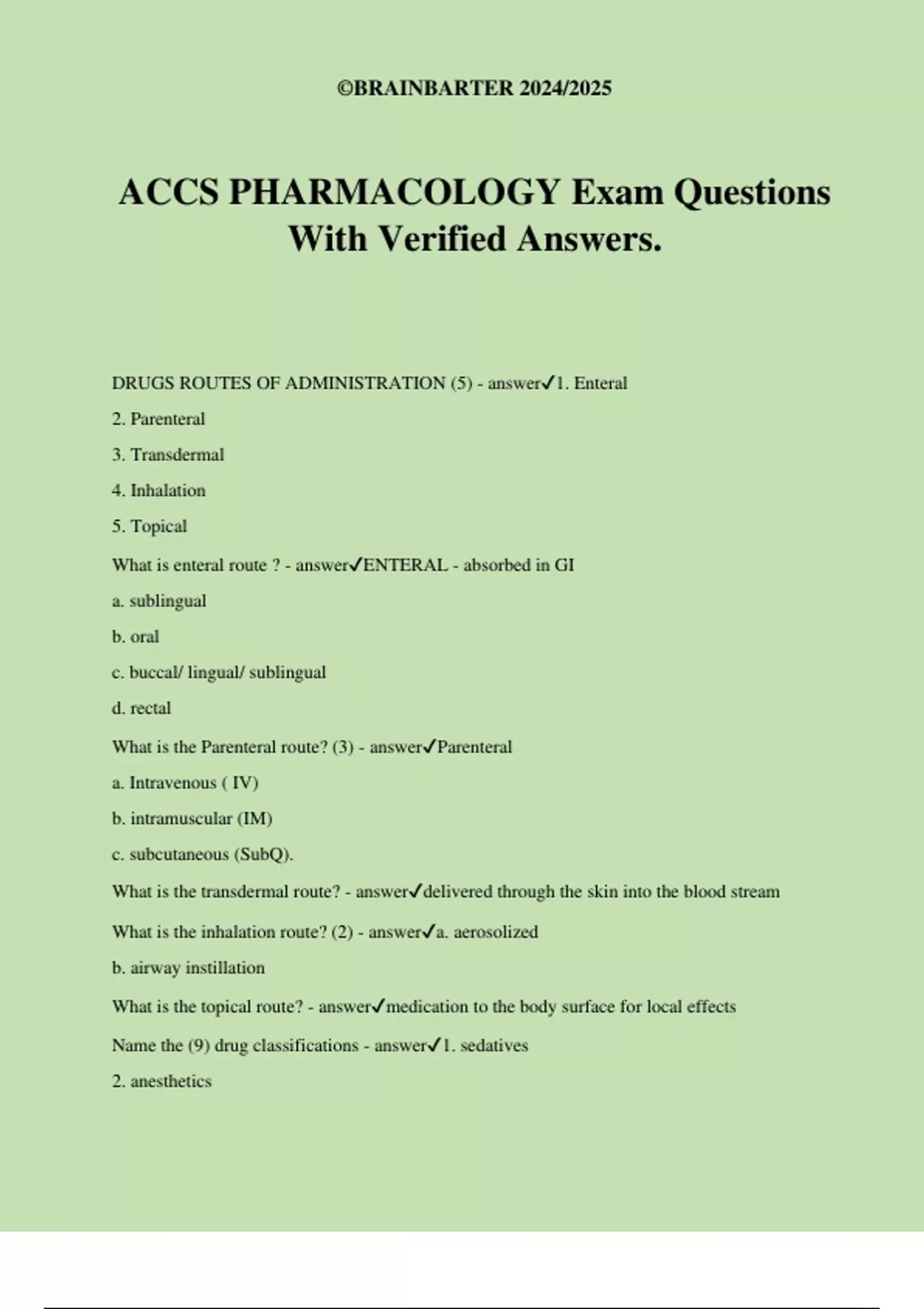 DRUGS ROUTES OF ADMINISTRATION (5) - answer✔1. Enteral