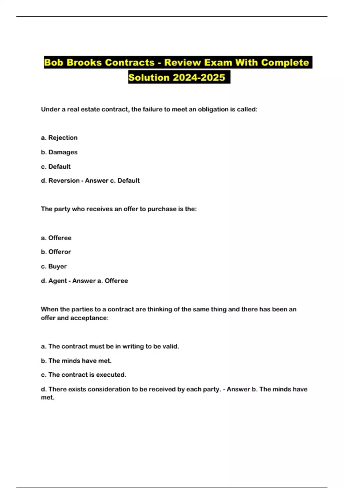 Bob Brooks Contracts - Review Exam With Complete