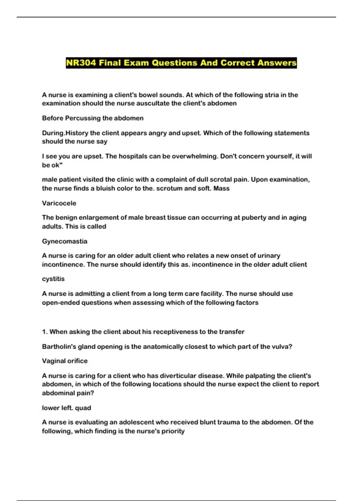 A nurse is caring for an older adult client who relates a new onset of urinary