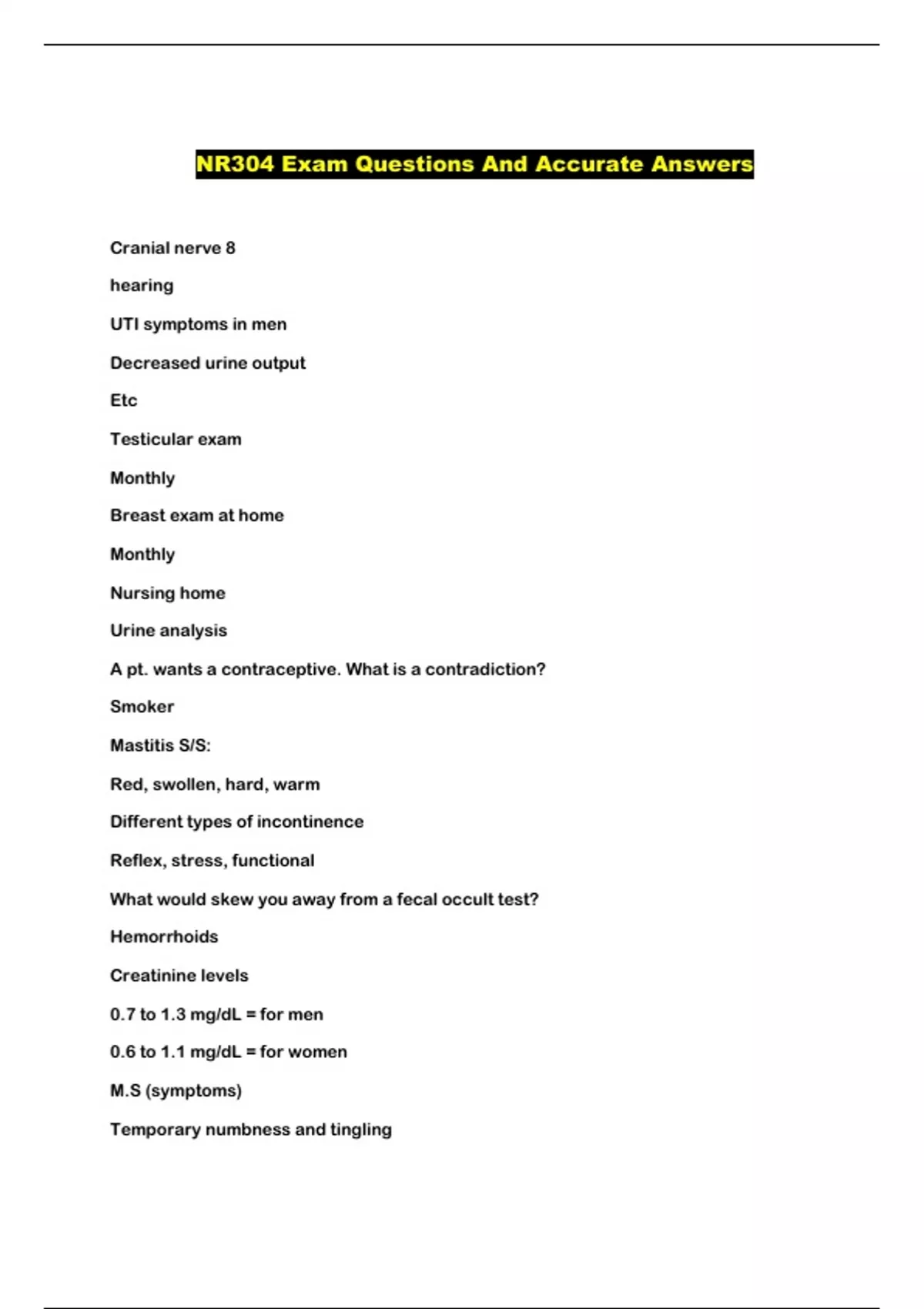 NR304 Exam Questions And Accurate Answers