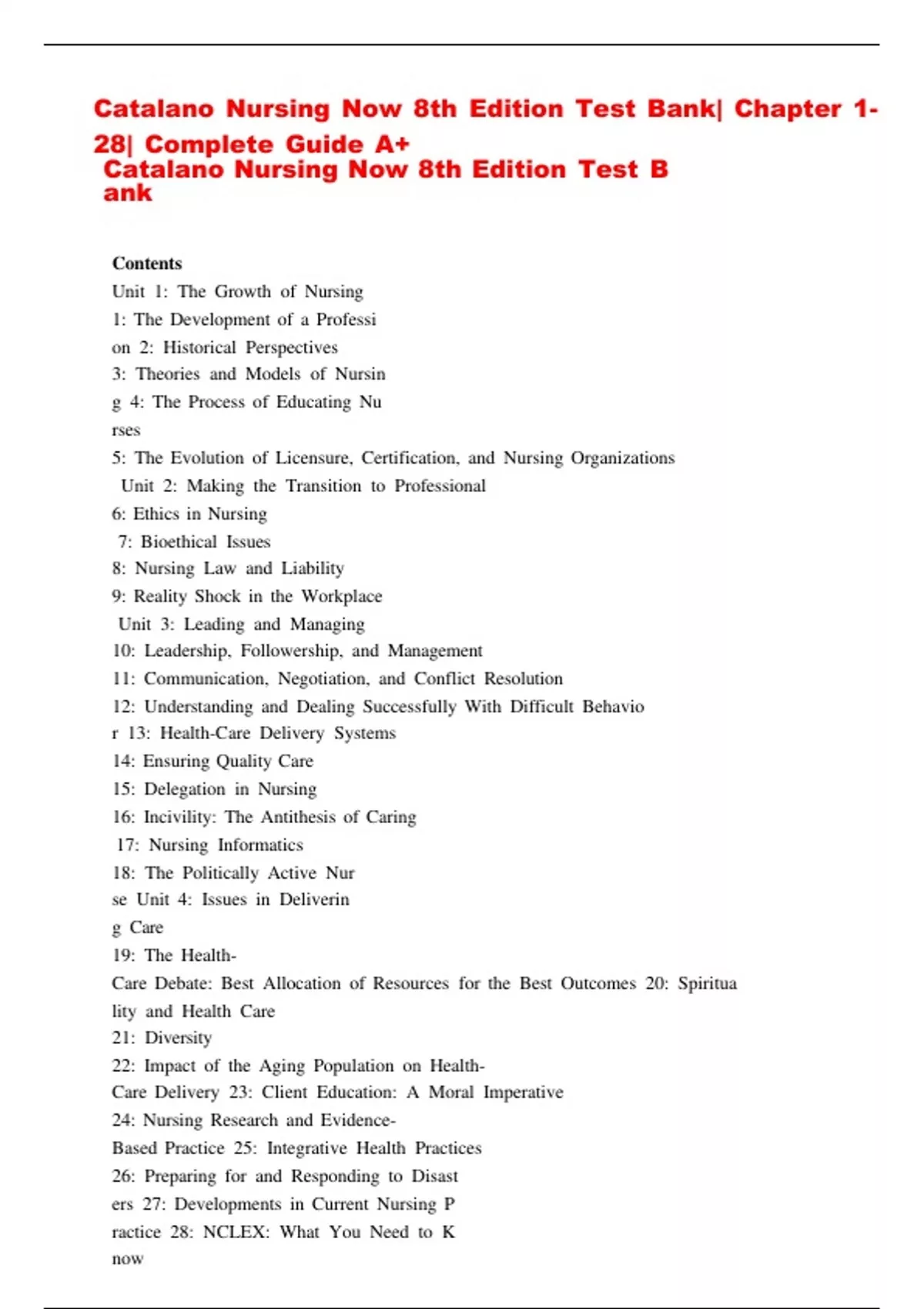 Catalano Nursing Now 8th Edition Test B