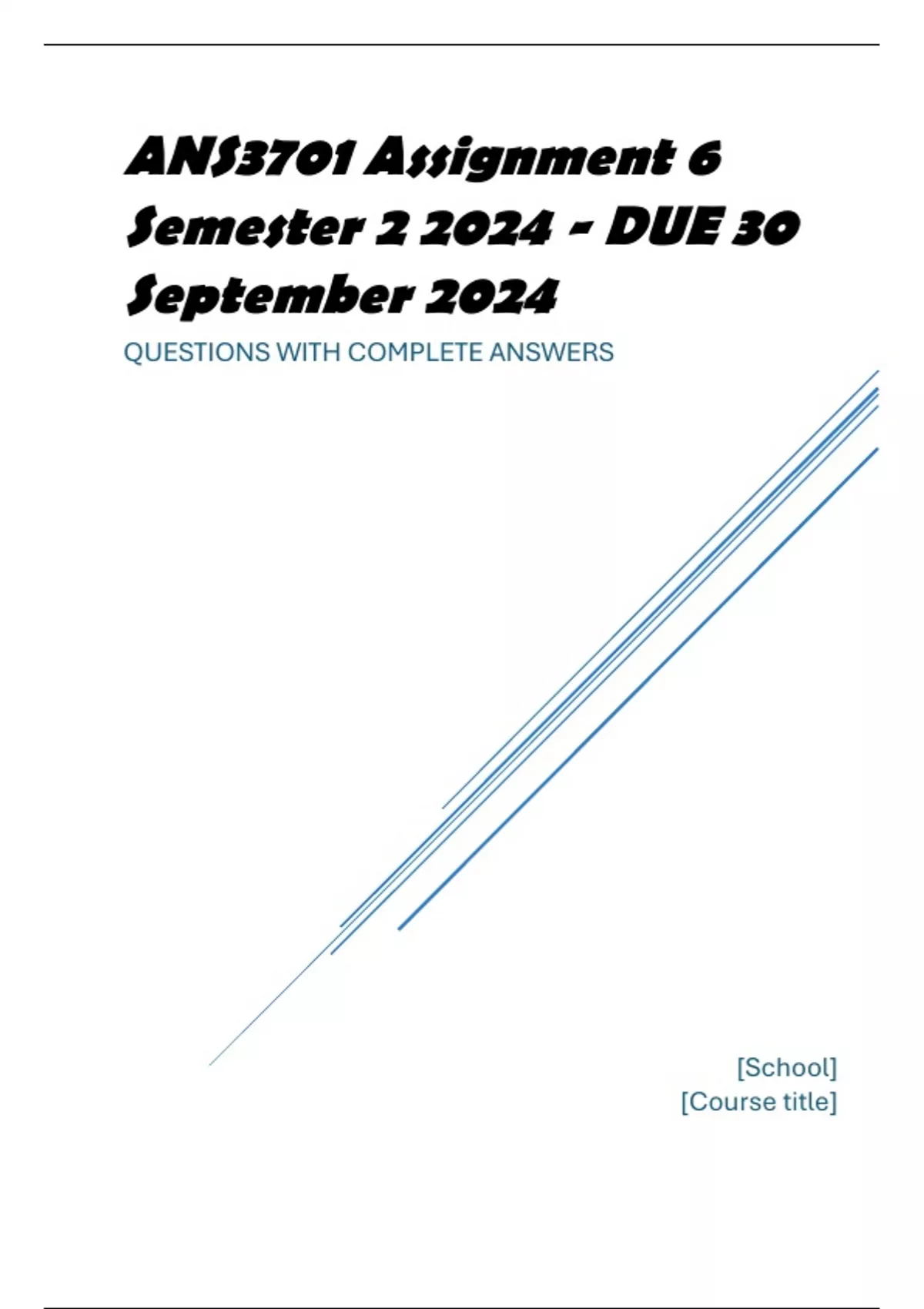 , ANS3701 Assignment 6 Semester 2 2024 - DUE 30 September 2024