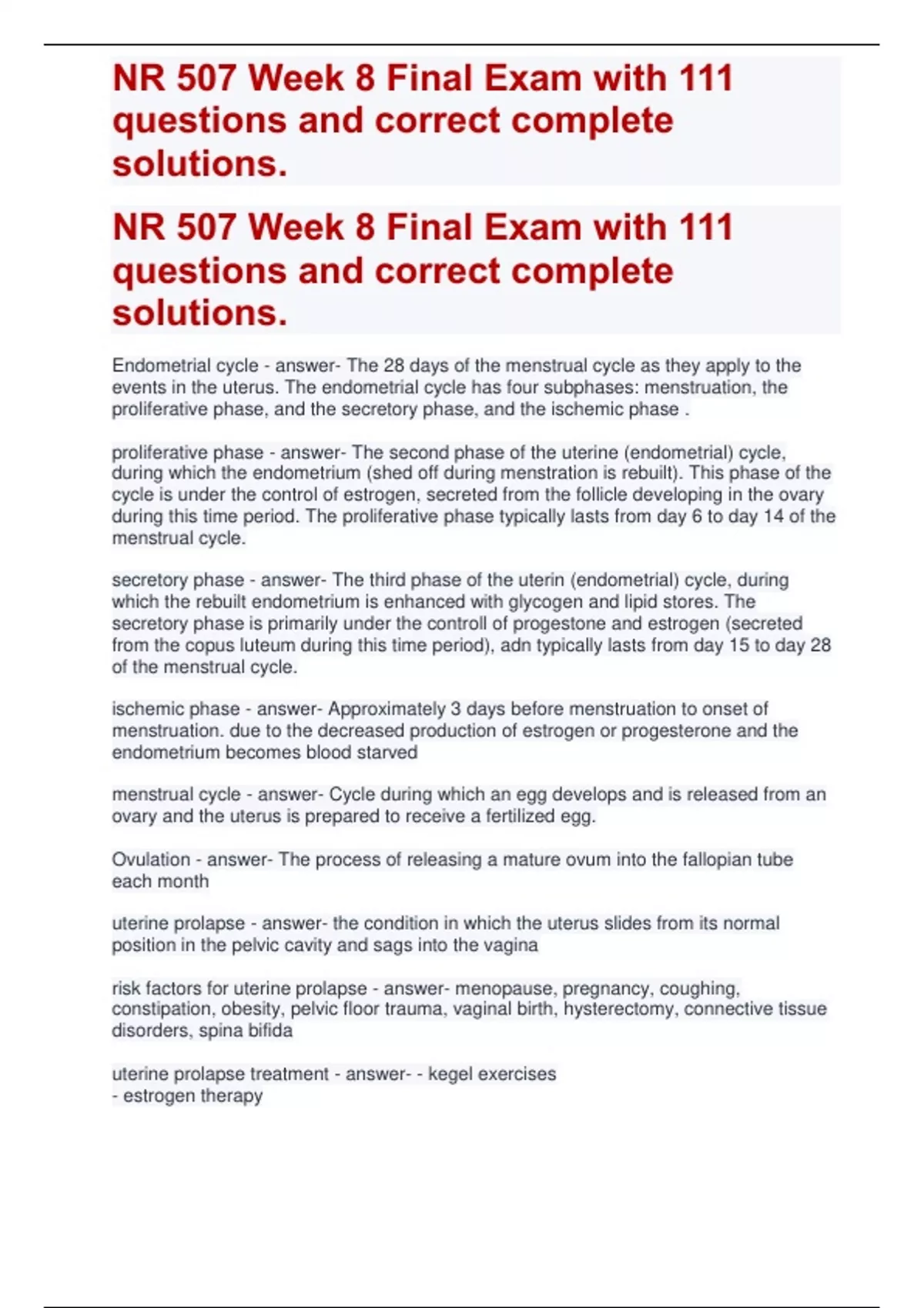 NR 507 Week 8 Final Exam with 111