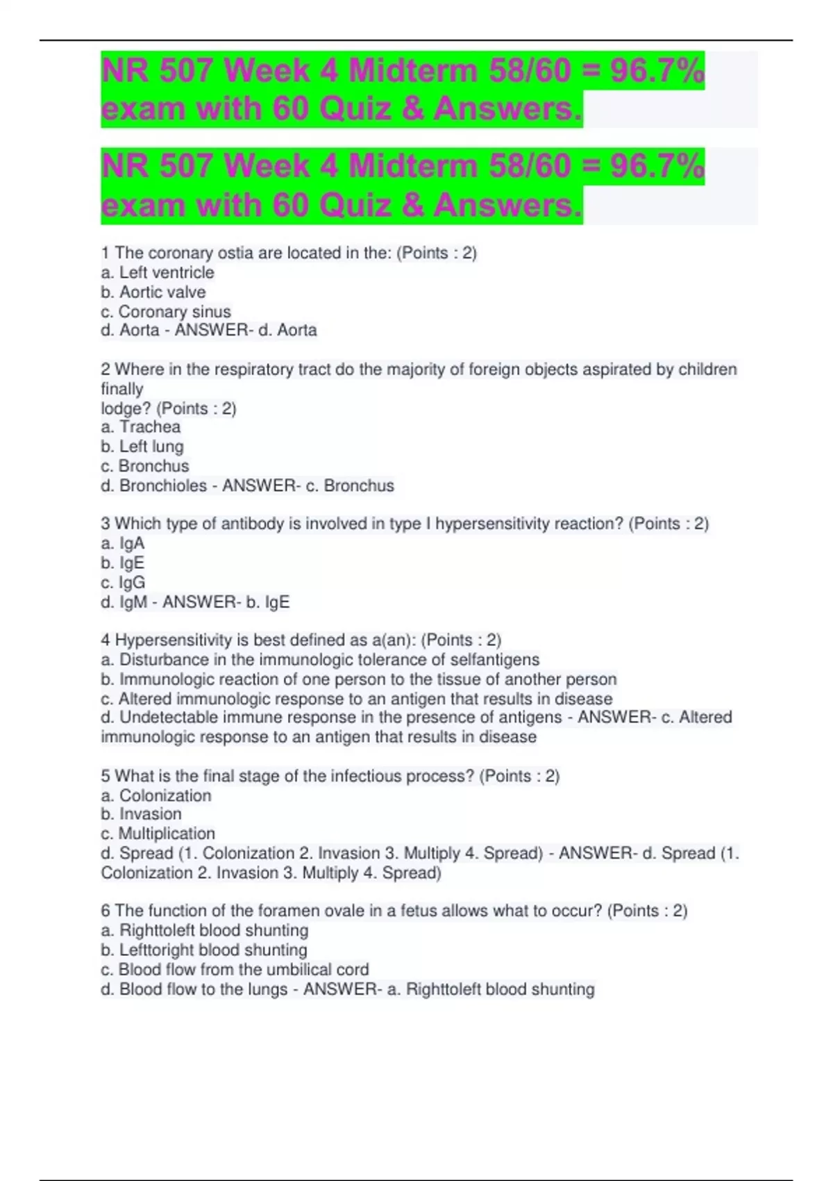 , NR 507 Week 4 Midterm 58/60 = 96.7%
