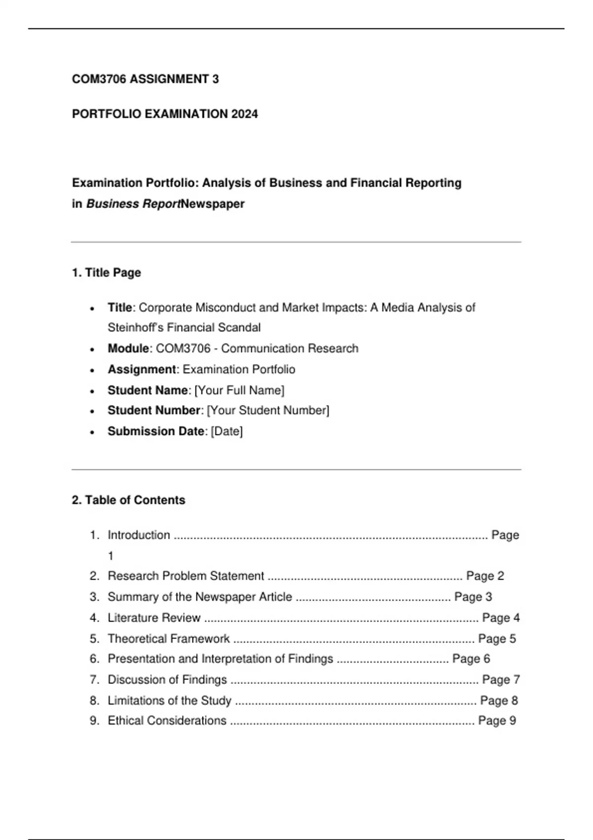Examination Portfolio: Analysis of Business and Financial Reporting