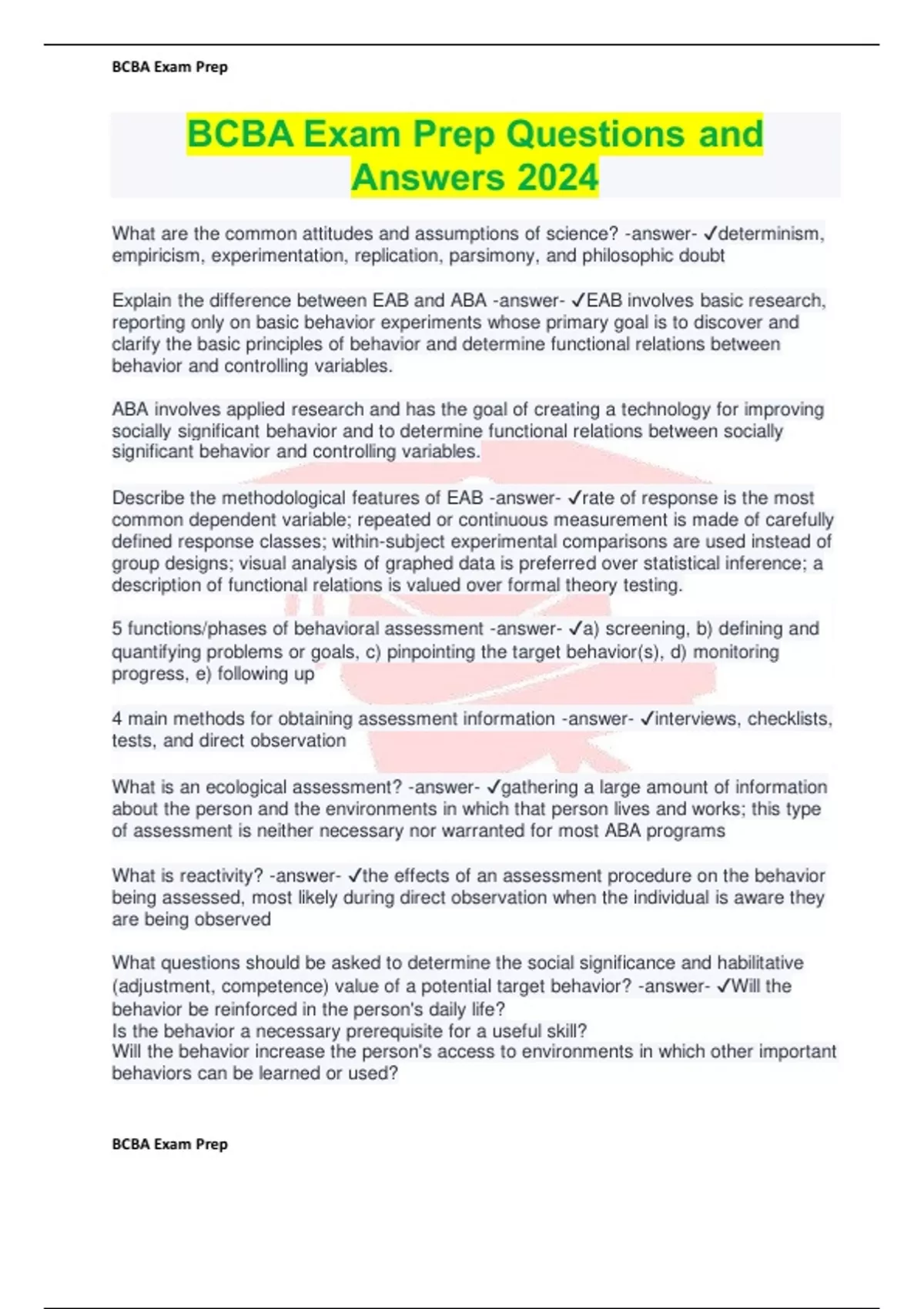 BCBA Exam Prep Questions and