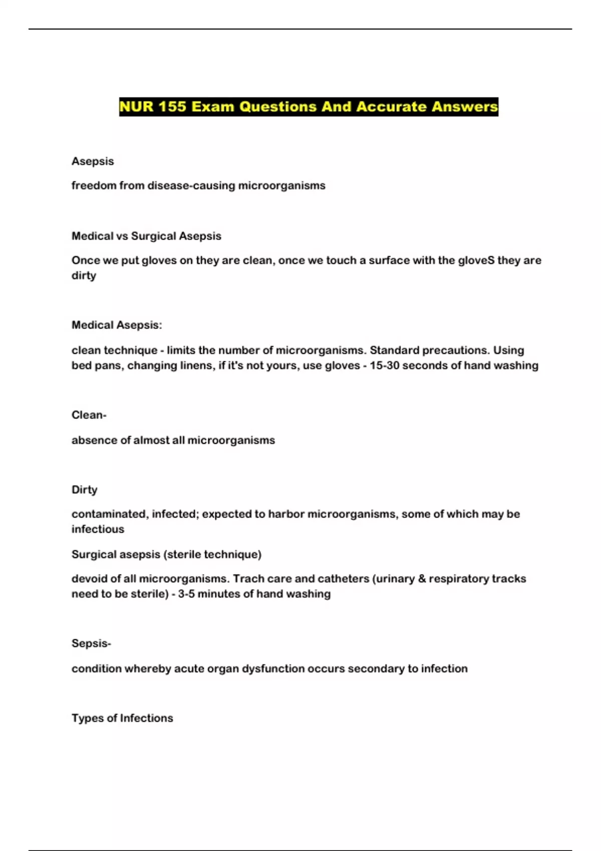 NUR 155 Exam Questions And Accurate Answers