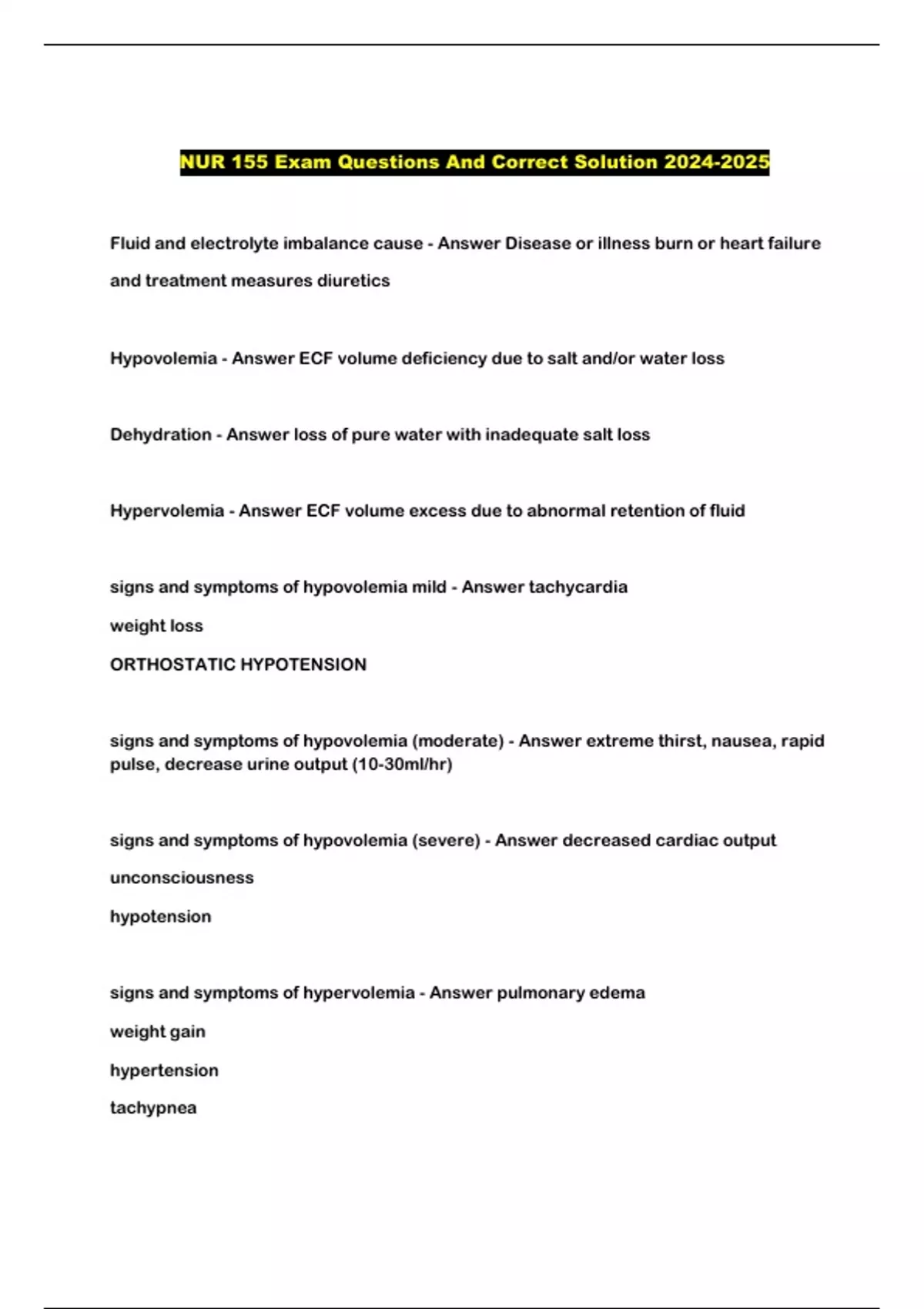 NUR 155 Exam Questions And Correct Solution 2024-2025