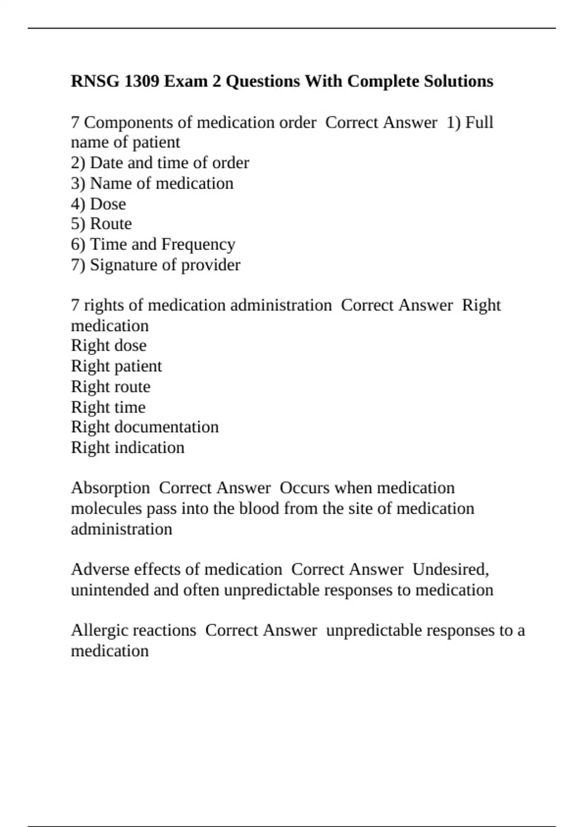 RNSG 1309 Exam 2 Questions With Complete Solutions