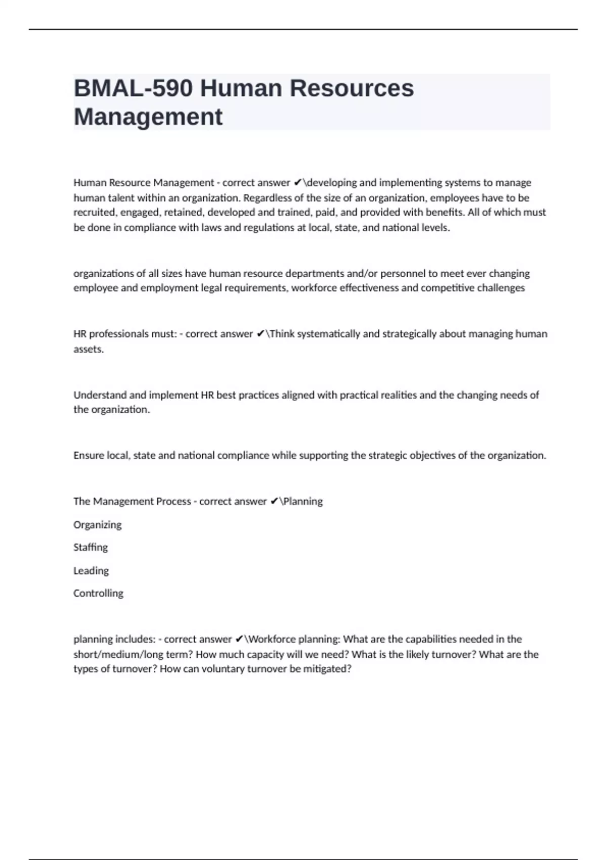 Human Resource Management - correct answer ✔\developing and implementing systems to manage