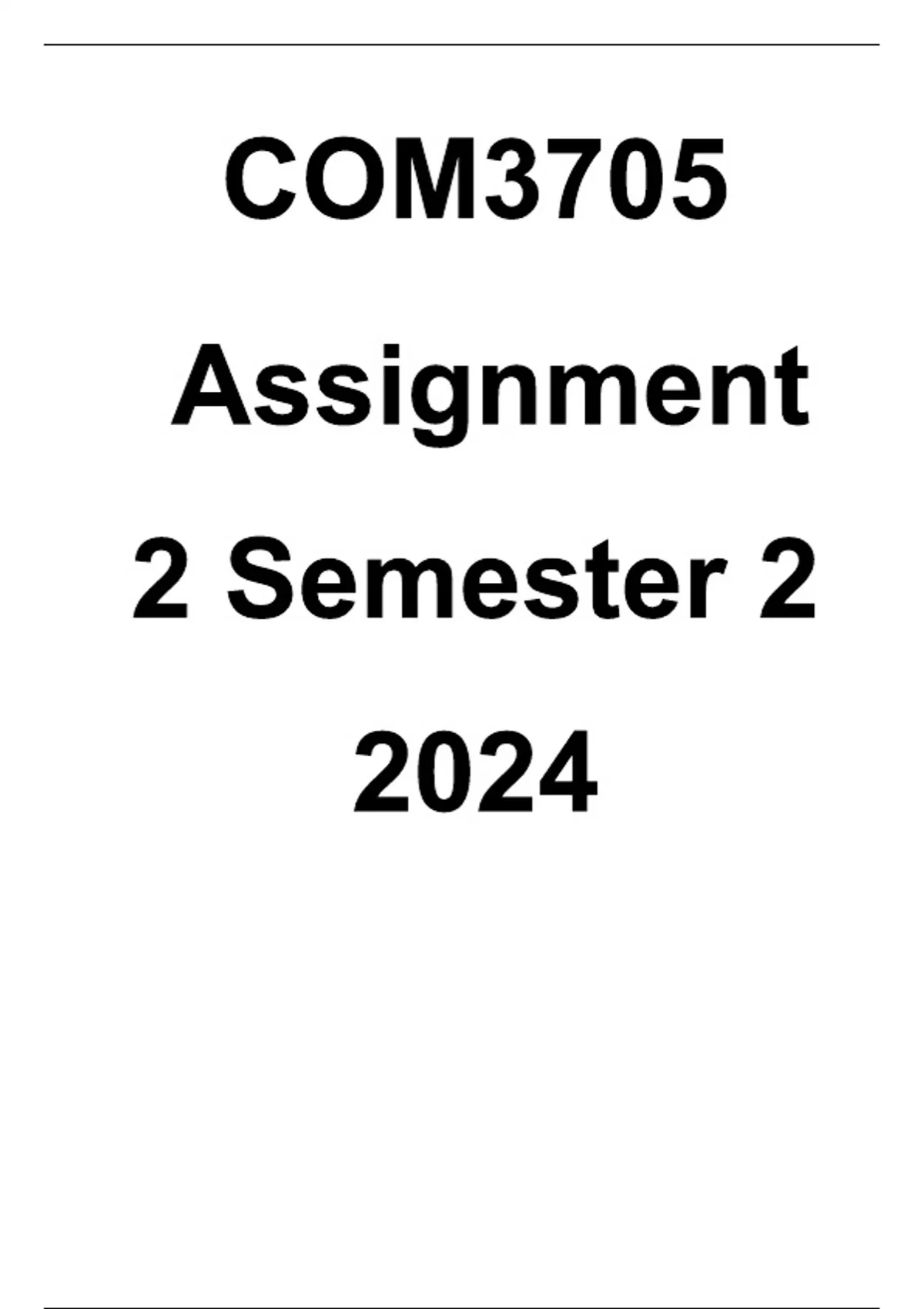 COM3705 Assignment 1 (DETAILED ANSWERS) Semester 2 2024 - DISTINCTION GUARANTEED