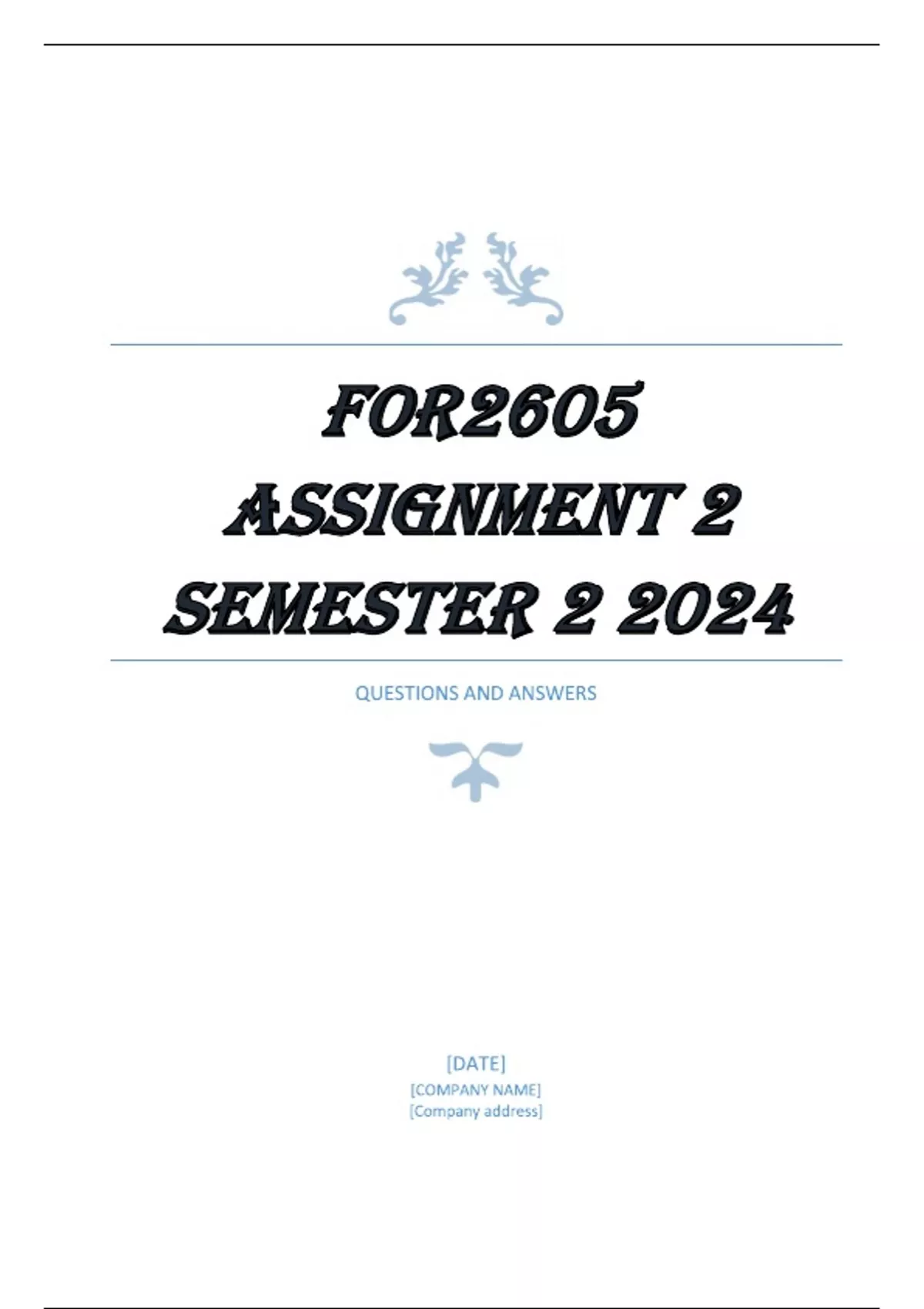 FOR2605 ASSIGNMENT 2 SEMESTER 2 2024 COMPLETE ANSWERS - DISTICTION