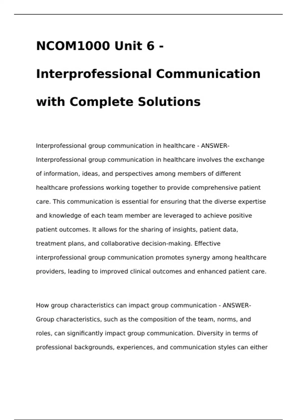 How group characteristics can impact group communication - ANSWER-