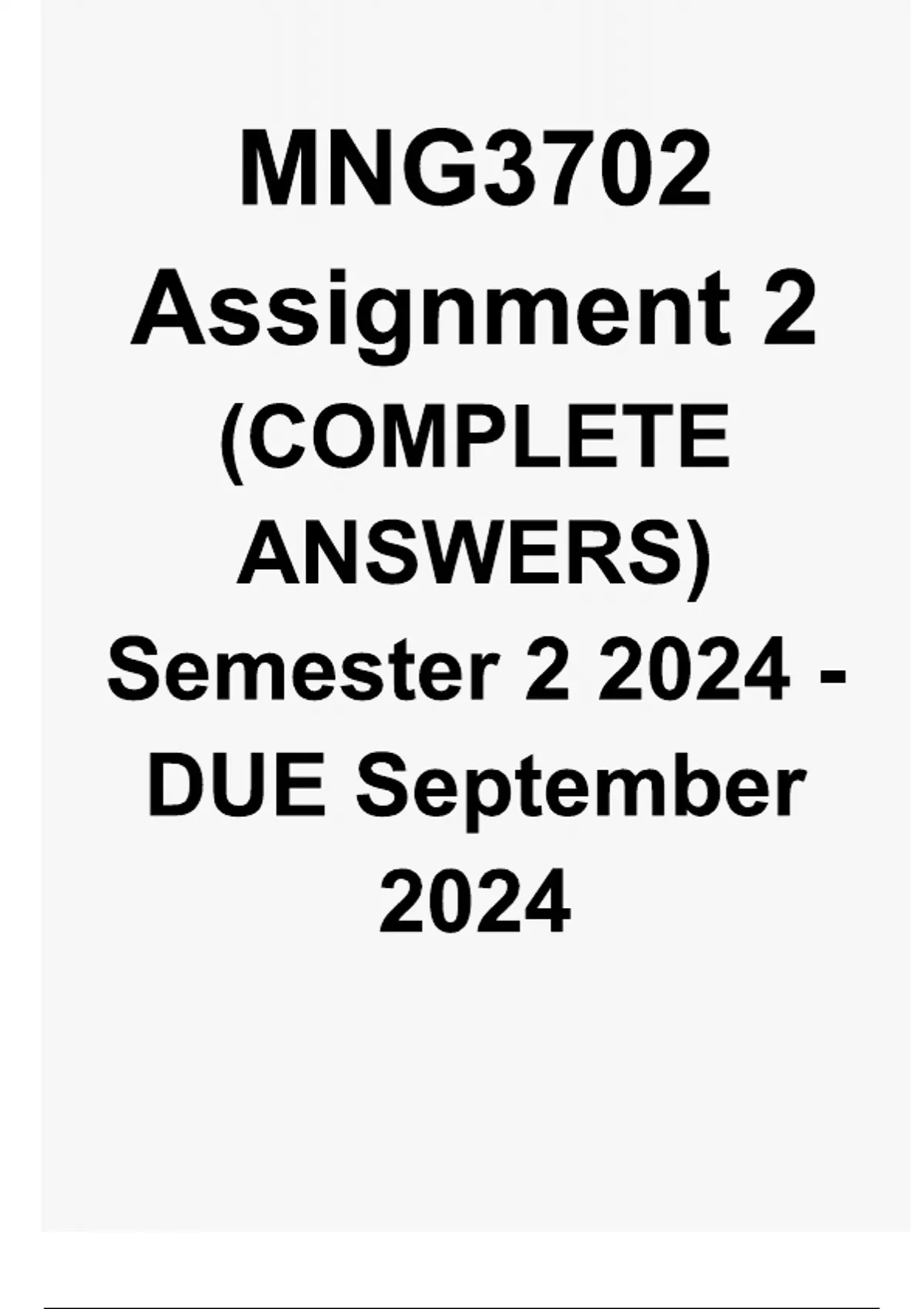 MNG3702 Assignment 2 (COMPLETE ANSWERS) Semester 2 2024 - DUE September 2024